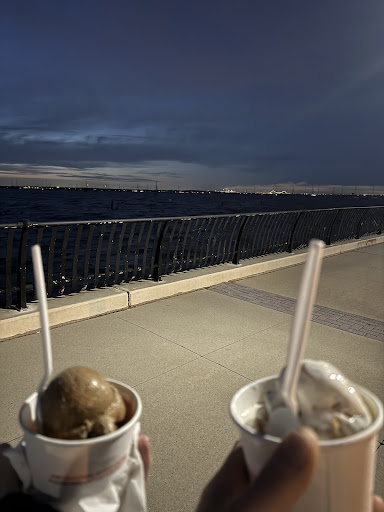 What really makes this place special, though, is the location. After you grab your treat, you can walk right across the street and enjoy it at the tables overlooking the water. The view of the New York skyline is absolutely stunning, and during the summer, there’s often live music playing nearby from one of the restaurants, which adds such a great vibe to the whole experience.