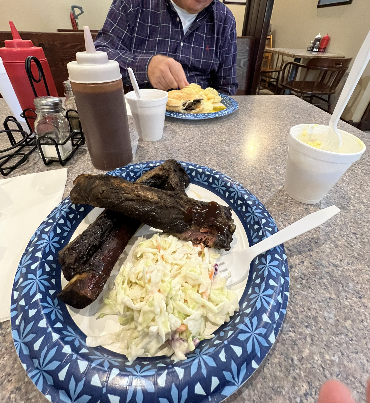 Ā Ā Ā Read moreLet's start off with the place. The tables were crooked and a bit dirty, and the seats weren't as comfortable as in mind. The lady was OK, but could've been more friendliet. I was there with my family and we ordered to go, instead. When we got it, it looked very unprofessional. Utensils and napkins in Ziploc bags, sides in foam cups with plastic on top, and then it comes to the food. My family and I ordered BBQ chicken and it was absolutely terrible! Chicken was dry, cold, and tasteless, unless you want to try smoke. There wasn't even any BBQ to it! We also got the ribs, same thing as the chicken, but add burnt! Only good thing there is the store-bought potatoes and beans. Oh, and the "homemade" fries. Don't even need to talk about it. Don't get it. Prices aren't...