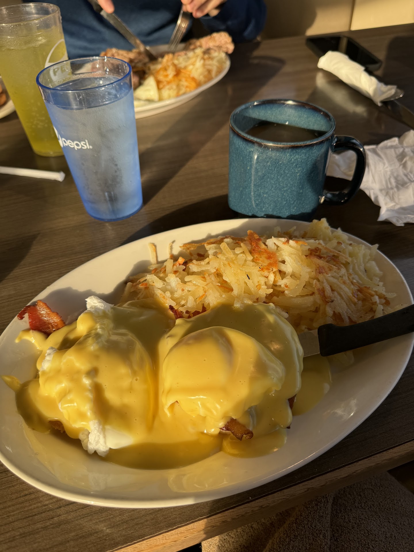 The price of the food is great for the portion sizes as well. I love their bacon eggs Benedict (rotating special, not always available ) and my partner enjoys the ribeye steak and eggs.
