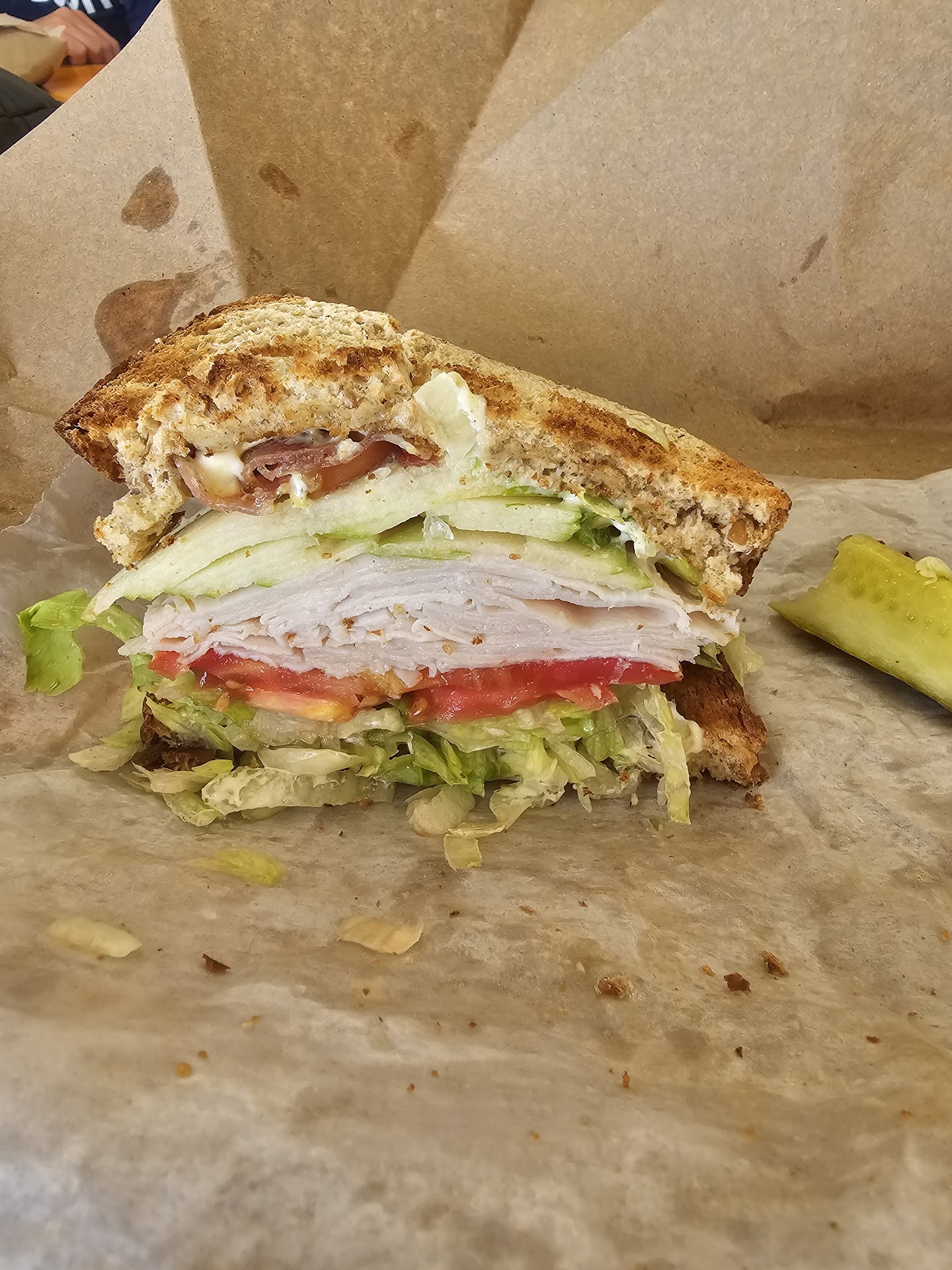 Read moreI've had a few sandwiches from here and all are great, but my favorite is "The Red Barron". The last time I ordered it, it was soggy by the time It got to my work. But what do you expect, its 95 degrees and the delivery driver had to sit in summer traffic for 6 miles to get it to me. I still ate it with a fork because its thats darn good. I ordered again today and asked for the bread on the side and they did a fantastic job of deconstructing the sandwich so I could eat it at my leisure at work. 3 pieces of rye toast, wrapped in foil, the corn-beef and cheese and krout wrapped in another piece of foil (still warm and melt-y) and the lettuce, tomato and turkey in the container with a cup of dressing, there was even a pickle! Bravo! I'll order it like this every time. It was wonderful to eat...