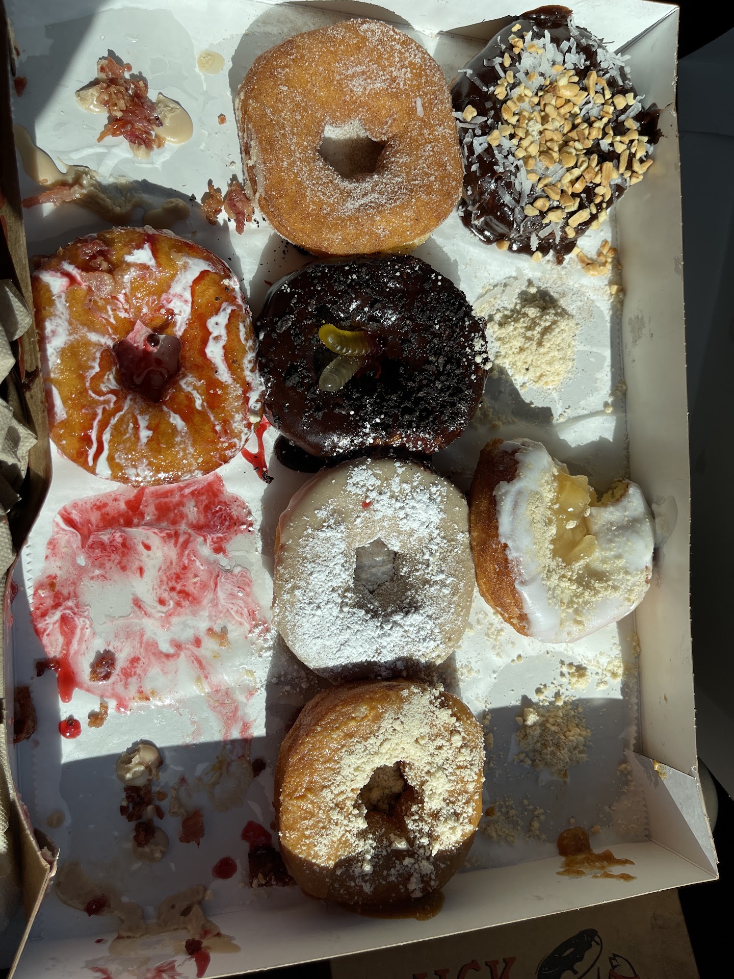 There are plenty of choices for toppings and frostings for the doughnuts. Have no fear there, it was actually tempting to buy enough doughnuts to try a little bit of everything... But fortunately my wife stopped me, haha.