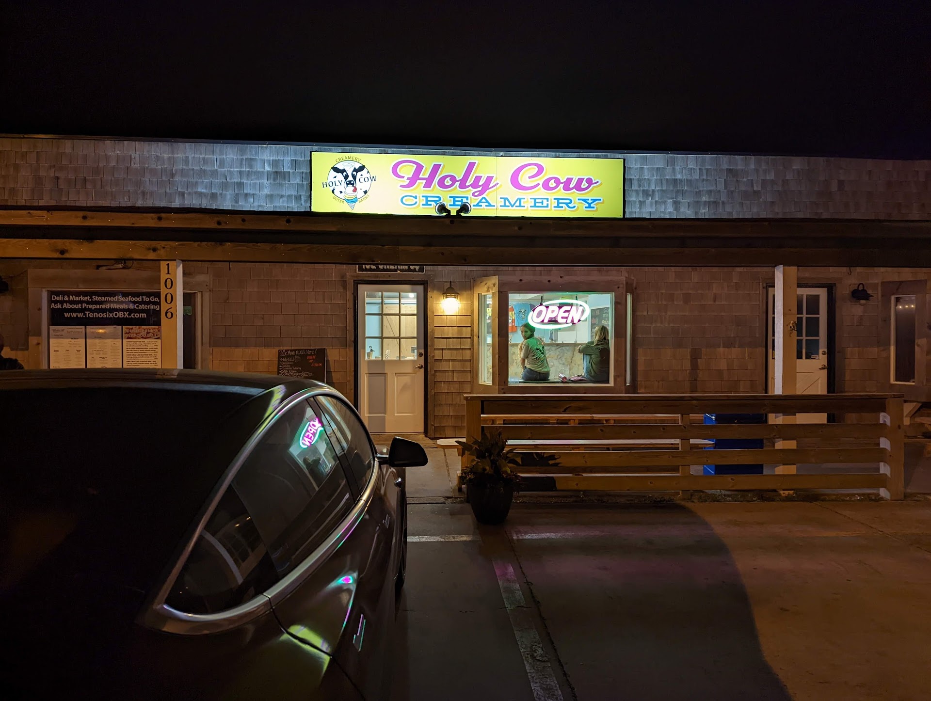 I think they have every ingredient they need for a really awesome place! Great, helpful staff, lots of fun flavors, a signature dish, simple, straightforward building with relatively fair prices, and a great theme. But the ice cream itself is really disappointing. The biggest problem by far is the texture: it’s not very smooth, it’s kind of thick and uncomfortable in your mouth, but most of all, it feels super cheap. It also doesn’t have strong flavor - they have fun flavors overall, but I don’t think they execute it all very well. You don’t get a strong sense of what flavor it is in every bite, you often need many bites to piece together what they’re trying to give you. And it also felt like the add-ins were not as abundant as I hoped. One upside is that they have a pretty good creaminess down that lingers in your mouth nicely, but it doesn’t really fix any of the other huge problems. But man, I hope they can improve, cause this is a cool spot that could become total...