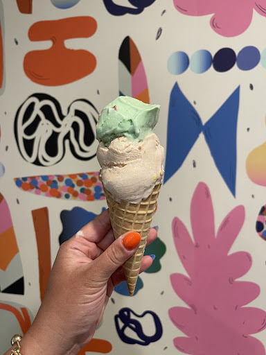 We went right away and the ice cream was delicious! I got the chocolate chip cookie dough and he got the red believer. My sugar cone cracked when the lady was scooping so she slid a new cone over the cracked one.