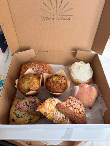 We had dinner at a local restaurant where we met John and he told us about Wake & Take. Once we heard the concept we knew we had to order. We immediately text Jaclynn, told he which items we were interested in and she responded right away. Fast forward to this morning, Jaclynn was here right as we opened the door bakery boxes in hand. She brought everything into the house for us and the smell was divine! We dove into the cinnamon rolls right away, they were still warm, and everything youād want a cinnamon roll to be, sweet and fluffy with all that cinnamon goodness. Next we moved onto the scones, lemon blueberry and bacon, cheddar jalapeƱo! Just the right amount of buttery flakey deliciousness! We canāt recommend Wake & Take enough! 10/10! Looking forward to enjoying the āleftoversā from the generous portions! Thank you, Jaclynn you made...