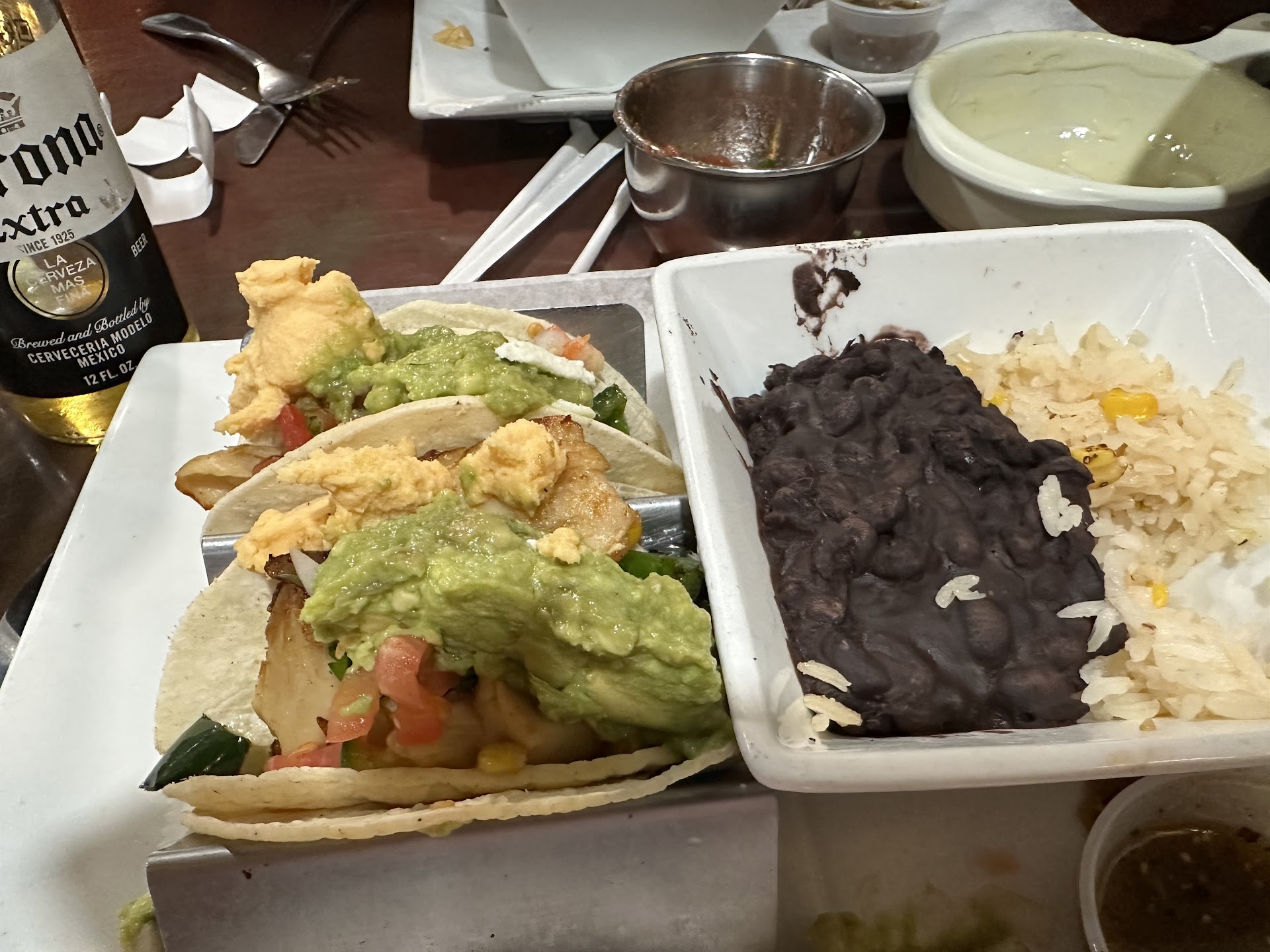 Read moreI was glad to see that they had a couple of vegan options after reading the menu online and reading a few other articles about the vegan options. I eat vegan as well as have a severe dairy intolerance. The rice they serve for the regular menu options contains chicken stock but the vegan meals specify white rice which no chicken stock is used(so I've read). I ordered the vegan tacos, which comes with a side of white rice and black beans. When my order came I received the regular rice that comes with the non vegan options and cheese melted on top of it. When I told this to the waitress and explained that there are two different rices specified in their menu, she told me that they do not have the white rice and only have that one (which is not vegan). The server apologized (I understand she did nothing wrong here)and I just asked for a side of the black beans, which she brought very quickly to my table.