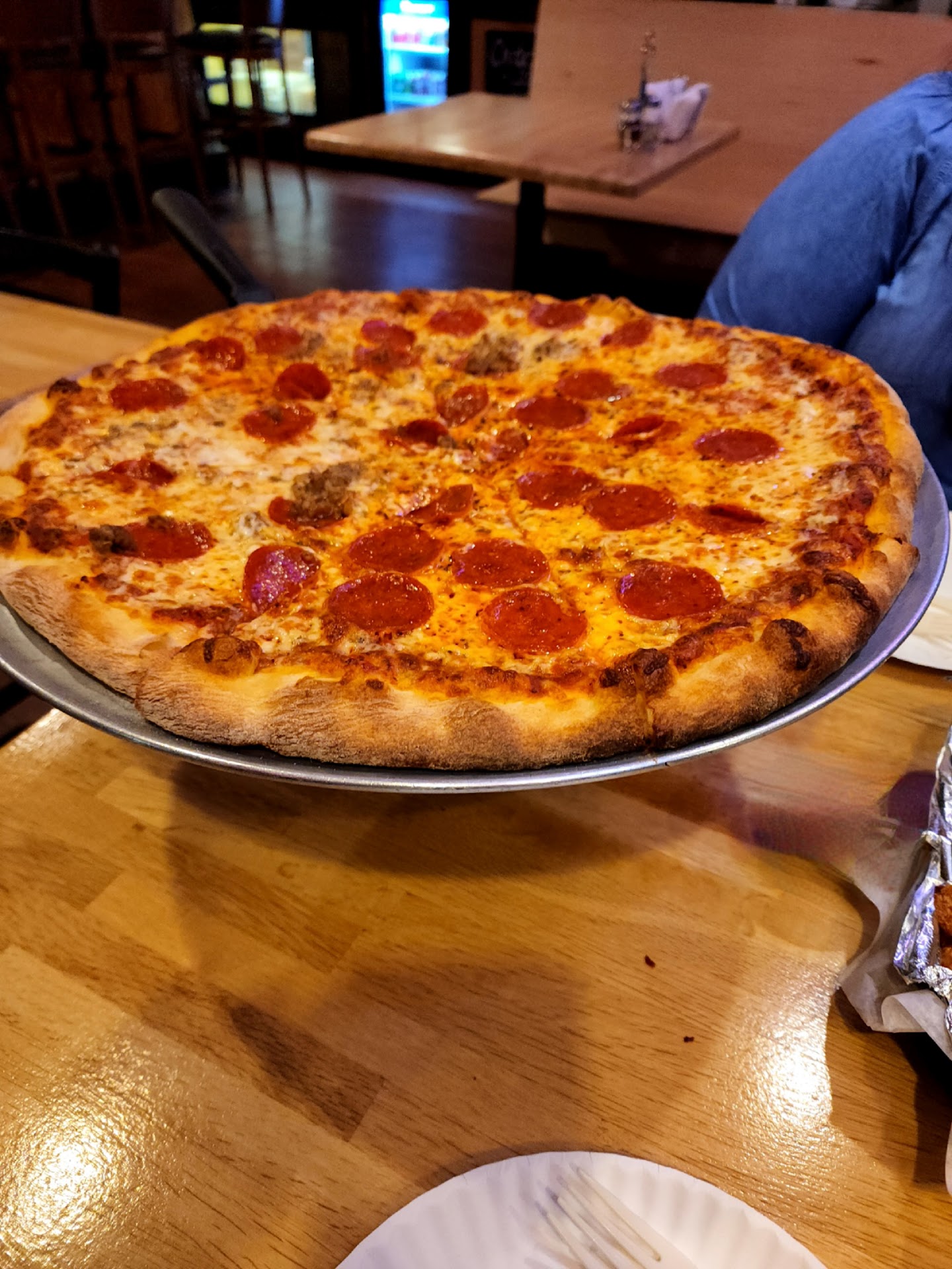 We ordered a half Pepperoni and half Sausage pizza. This has a hand tossed crust, it 2as thin and crispy, and I believe cooked in a wood-fire or brick oven. The pepperoni was high quality, thin and had a nice flavor. The sausage was ground with a light fennel flavor that wasn't overpowering. My one issue is I would have like a few more toppings per slice, especially the sausage. The sauce was traditional tasting marinara that was flavorful but subtle and the cheese was melted well. I think the crust to sauce and cheese ratio was about spot on.