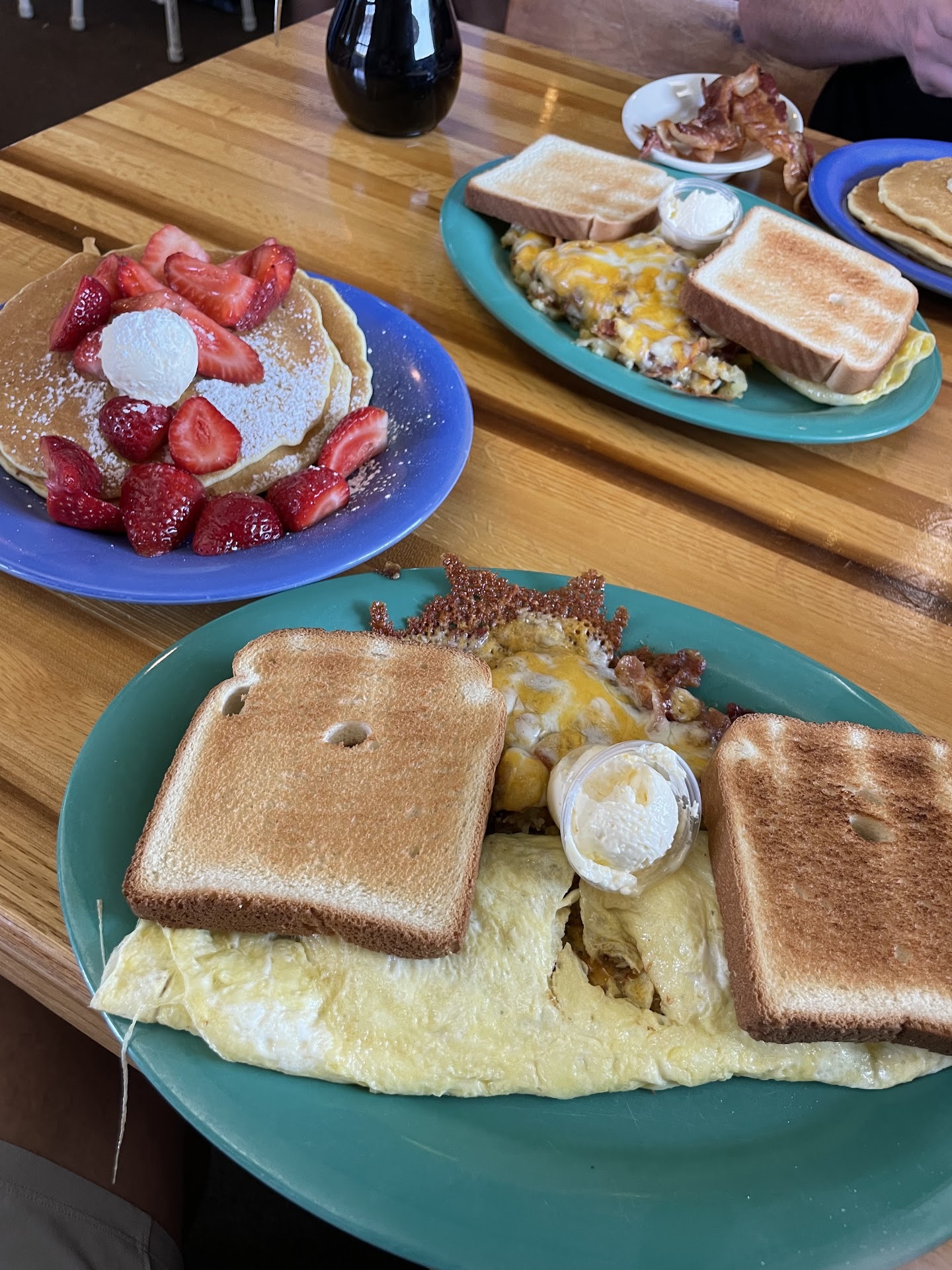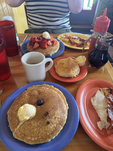 Read moreThe food is absolutely delicious! There is a little bit of a wait usually, but not too bad. The prices can get a little higher, especially if you start to add things. It was our first time so we weren't sure of the best way to order to get the best deal. You order in a cafeteria style line. My grandson wanted to add banana slices to his pancake. We later realized it was $2.95 for a few slices of banana. We added chocolate chips to it also and there were perhaps a 1/2 TBSP of chocolate chips and that was $2.95. That was probably on us for not asking the price or finding a pancake on menu board that maybe came with those items already, but it was so crowded and we were trying not to hold up the line. Our breakfast bill came to $100 with 3 adults and 2 children. 1 adult drank coffee, 1 child drank juice and the other 3 of us drank water in cups. Even though it's serve yourself they do refill your water and coffee so we left a 20%tip. It ended up being a pretty expensive breakfast, at least for what we're used to. Saying all that, would we go back? Absolutely! It was delicious food, worth the price. Just be aware of that and if your kiddos waste food don't add on stuff they won't eat. Look up the menu before you go and know what you want and see the ala carte prices. The staff was friendly and kept our waters full and the coffee cup full. This is the best breakfast food we have had so far in our 8 years going...