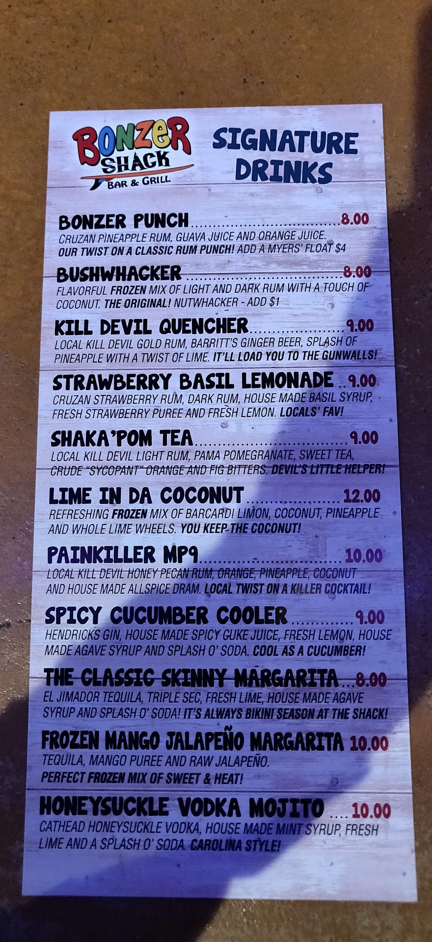The place sits right next to a public beach access point, and when I decided to go there I thought to myself "Well, this is going to be a captive market kind of place: overpriced, inferior quality, and corny. Oh well, I'm at the beach, my family is hungry, and I don't want to lose my parking space. Bonzer Shack it is." Turns out the food is great, the prices are better than reasonable, and while it's a little corny, it's a pretty chill spot that looks like it must be fun at night, too. Their BLT comes with fried green tomatoes and is awesome, the Rasta burger is an excellent black bean burger, and their fries have a nice batter and a little garlic flavor. I went back the next day and got popcorn shrimp and a burger from the kids menu. These were not exceptional, but they were good and inexpensive and came with a lot of fries. They also let me in before they opened to cool off in the air conditioning and gave me a free refill of pink lemonade. The staff was nicer than they had to be, my family was happy, and I didn't spend a ton of money: great success. They have live music every night and three beanbag-toss ("cornhole") courts out back. I have a little kid, otherwise I'd come back later and have too much to drink in their nice...