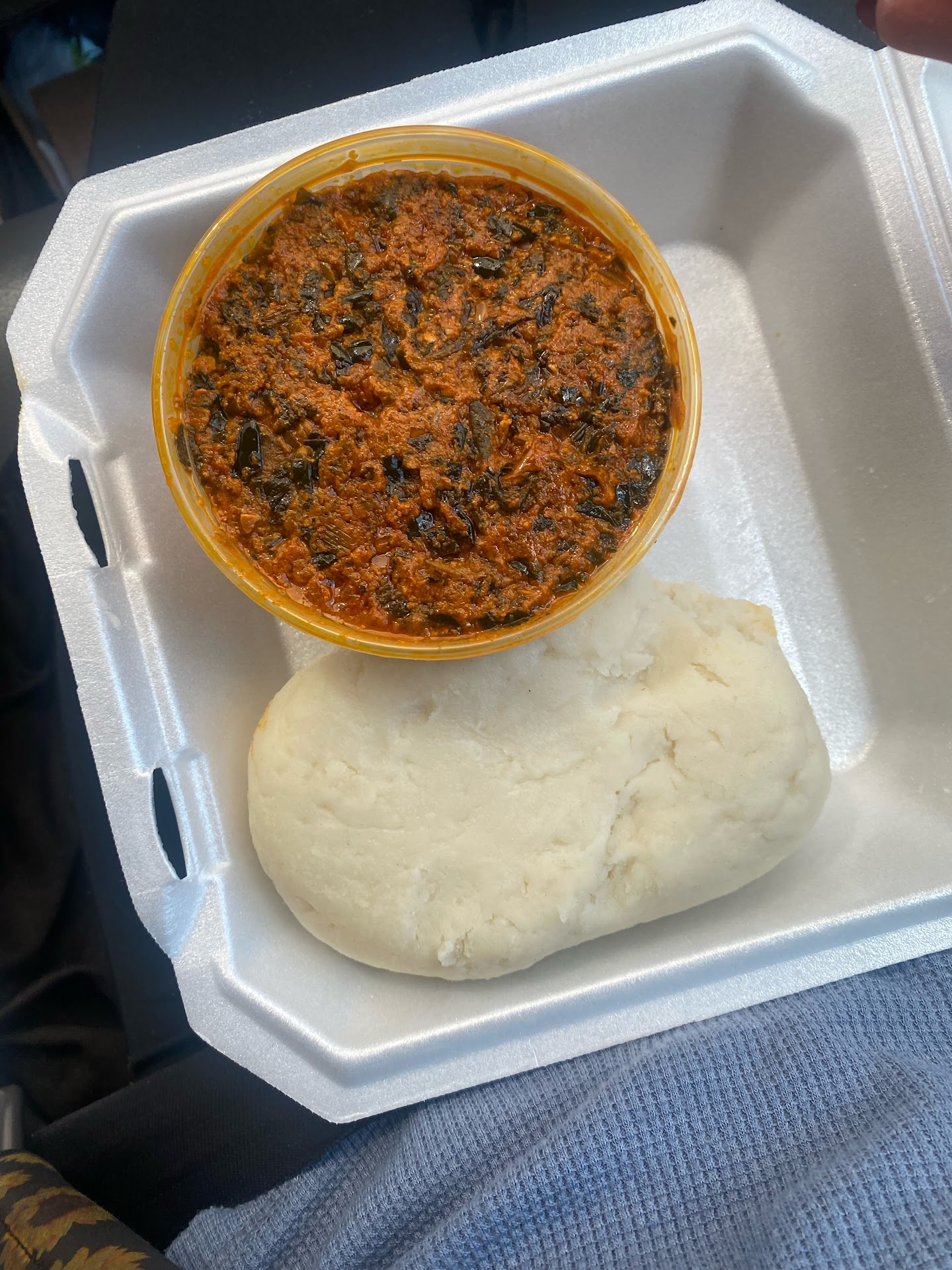 The Egusi and the fufu were great! Very hot and seasoned well. The egusi was balanced perfectly by the fufu. The fufu didn’t tasting like just yeast. This was ready in less than ~20 minutes.