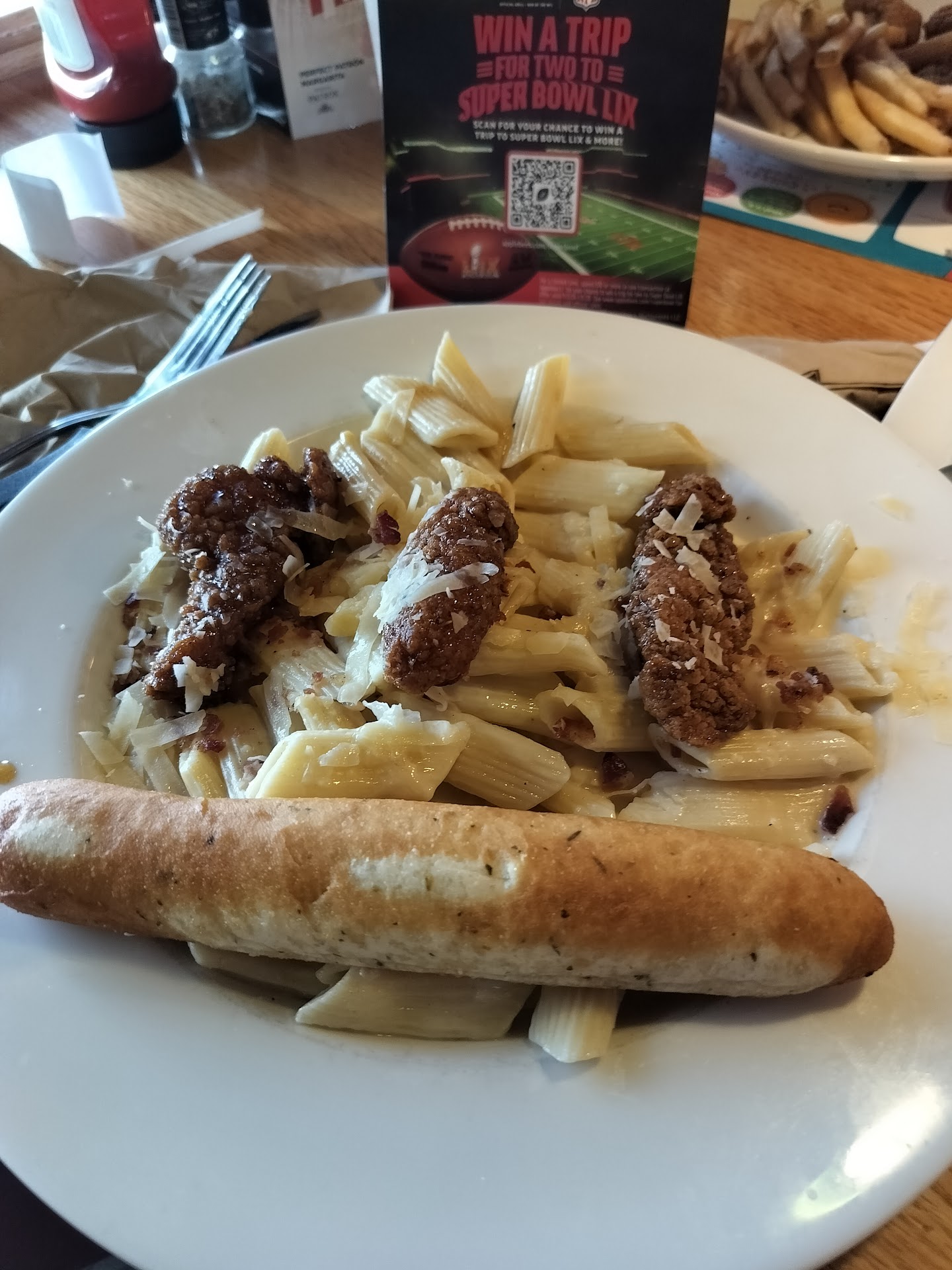 Ā Ā Ā Read moreWent to Applebees with my wife 2/28/25 Got placed at a really nice servers table, however the server openly admitted this was their first night. No problem, I am not a angry person im rather patient. However... a 45 minute stay at Applebees turned into a 2 1/2 hour stay, most of the time sitting there not really getting service at all. Why? Well, the BRAND NEW SERVER was overstacked with Tables and you could see them trying their best with Zero help or Shadowing or assistance, where other areas were getting help which made me question... why? I asked for a few items and never got them, I never got any drink refills and the poor server was literally all over the place and just simply couldn't manage to keep up. Management is fully to blame for this, why did a manager never come out and help? Why did you never assist your BRAND NEW server? The food came out, we had a half rack of Ribs and fries for one entree and the other was the Honey Pepper Chicken Pasta, The ribs were Lukewarm and fries seemed as if they were sitting there for some time.... Not worth the 1 1/2 hour wait that was required for me to get these items. We then ate our food, only to ask for the check, which... once again took 20-30 minutes to acquire this, not that its purely the servers fault because as stated they were completely overstacked for a Brand new person.