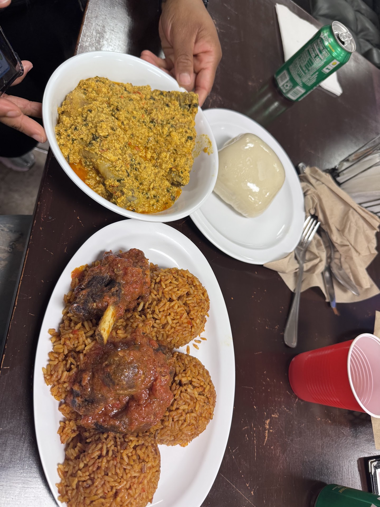 Read moreThe food made it worth it. My husband (Nigerian) and I ordered to pick up. Jollof Rice with Beef, Egusi with goat, Nkwobi. The food was absolutely delicious. I usually hate jollof rice from restaurants cause they tast like they are made with ragu sauce but this jollof tasted very well. Egusi was delicious and not runny. Everything was well seasoned. The bad part was everything else. The prices online do not match what they charge in store. If I had ordered online it would have been about 20 dollars cheaper. Jollof was showing 12.99 online but I was charged 16.99 in store. Im actually ok with paying the higer price because the food is so good it's worth it. The prices need to be consistent in store and online and anywhere else they advertise. This was about the same price difference for all the items. The man in the store said he would tell his boss but I would have to pay what his register showed. I use to work in food services. While I understand the register concern, he could have at least try to contact the boss but he did nothing. He also seemed to be there by himself. As if he was the host, chef, and waiter. I stood out front by the desk for a long time with no employees in sight or ear- shot before another customer went and knocked on the door in the back to get him to come out. At least he was polite. The place looked very throwed together without much thought. All of that said, good west African food is very hard to find in this area. So I will be visiting this place again as long as the food quality stays the same. This will be a favorite of ours and I will also recommend this place and just caution about the issues. Again, can't speak highly enough...