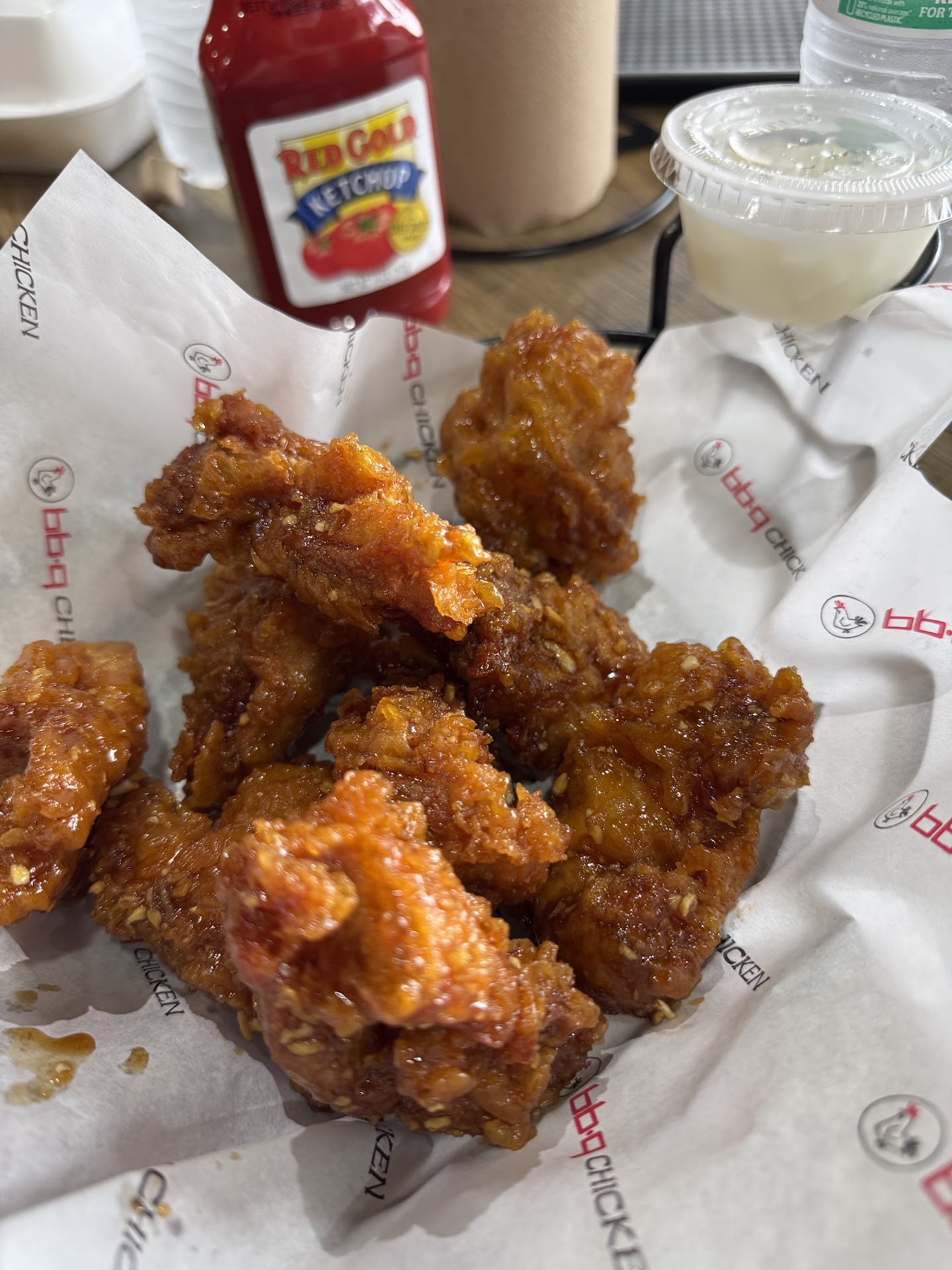 Read moreI am ashamed to say that I went the bb.q chicken 2x in one week. That's unusual bc we don't eat out like that. But these wings yall...they are beyond good.. they were an unexpected bliss. I was leary at first but my daughter had been with a friend and had gotten the Kimchi Rice so I told her that if we spent the money, the rice would have to be enough for lunch the next day. So, I ordered the 9 pc garlic and honey wings just to try but when we tried them, everyone was eating them! The rice lasted Thursday and Friday for lunch and by Friday evening, I was back trying another flavor of wings, plus a large order of the garlic and honey.