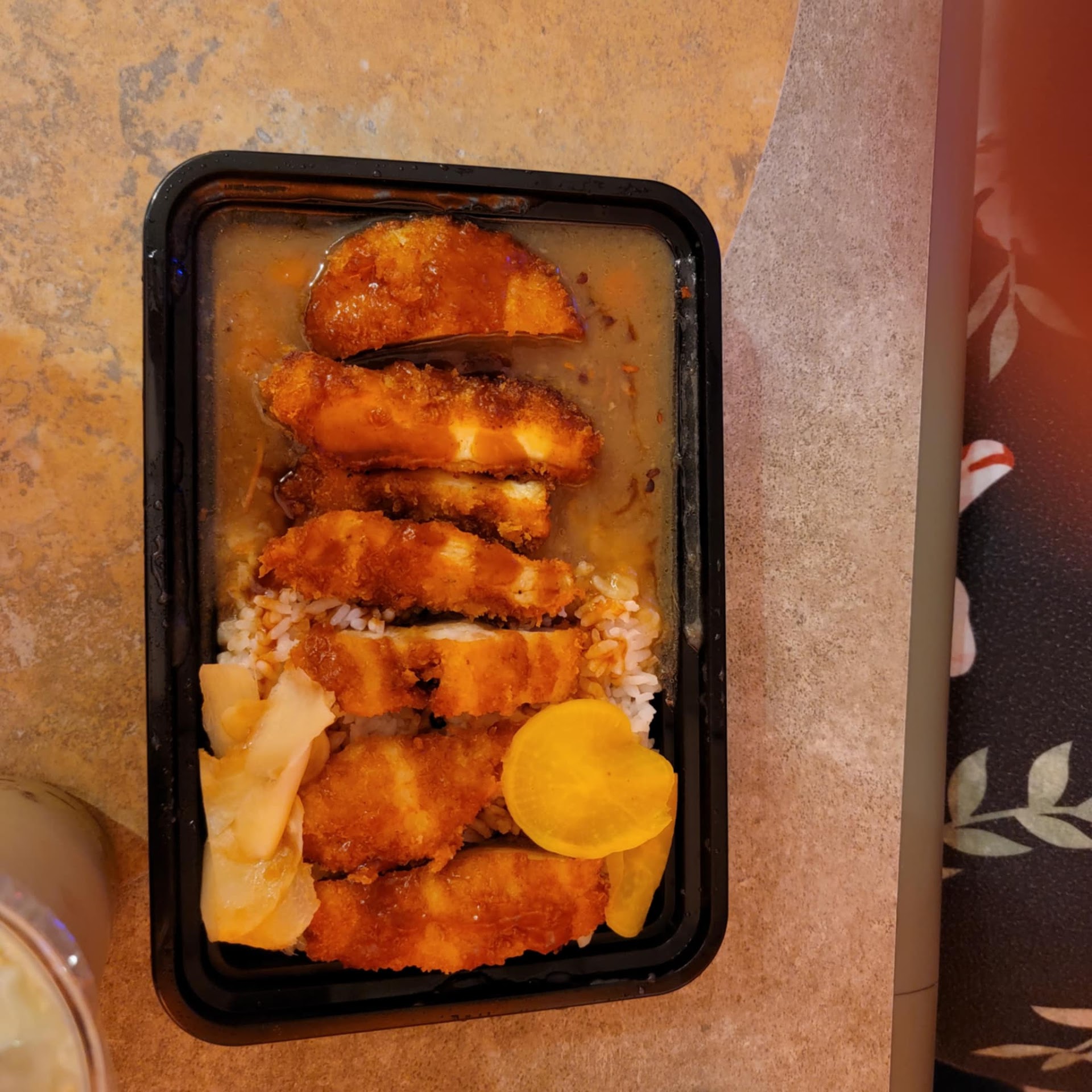 We started with boba teas – strawberry for him and matcha for me – which were refreshing and perfectly made. Our appetizer of takoyaki (octopus balls) was melt-in-your-mouth good, with a crispy exterior and tender center. The katsu curry was another standout, with the katsu being both crisp and tender, pairing beautifully with the fluffy rice and rich, flavorful curry. Served with miso soup and pickled daikon and ginger, the dish offered a perfect balance of textures and spices.