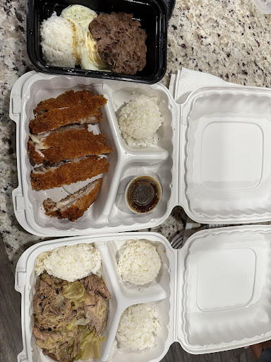 Read moreCame here for the first time with my friends and family. We ordered the mini teri beef plate, 3 meat plate (bbq chicken and double Portuguese sausage), side of poke, spam musubi, and butter mochi. All the food was flavorful except for the banana lumpia. It wasn’t sweet and it was super mushy and soggy. My double order of Portuguese sausage was a half sausage butterfly split and the musubi was wrapped in foil and fell apart pretty easily. The poke was flavorful, but honestly, just mushy. Being from Hawaii, it was ok compared to home. As much as I'd like to show a lot of love to this restaurant, the food was just ok. Prices were reasonable for the amount of food we got.
