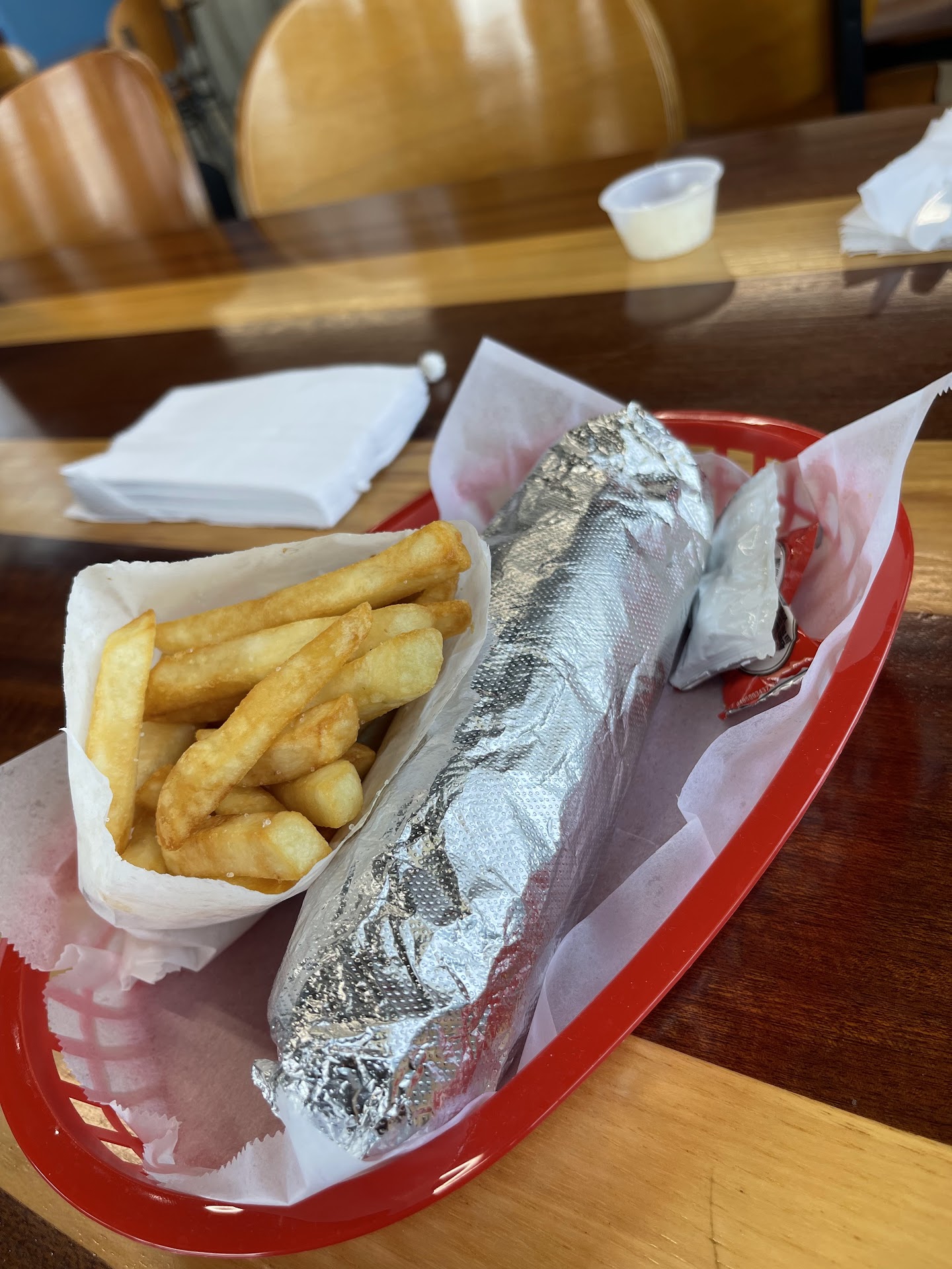 If there was one thing that I missed since I stopped working on Fort Hood/Fort Cavazos, it's this little mediterranean place tucked in between the military clothing and sales and the barber shop behind the bank. Now they're off post and easier to get to. I'm not ashamed to say that I could get the same thing every single time and I probably do. More than probably. I got the doner wrap combo with all the meats... chicken, beef, and lamb and I didn't pick any of the vegetables off either because I've matured a bit. I didn't even notice that they charged extra for the cheese until someone else mentioned. That was a whole dollar though so just be prepared for that. It was probably just under $20 all together with fries, a fountain drink in a cute little cup with a coffee cup lid, the feta cheese, and backlava. I don't know if I would have liked it more on a traditional pita. If this wasn't a tortilla, it might have been the thinnest pita wrap I've ever seen. It wasn't too messy either. I think that I only had to wipe sauce from my face once. The spicy tatziki sauce tasted really good. It was just a little thin. The fries were super plain and still better than most. They probably could have used some salt and I'm sure there were salts packets and ketchup nearby. It was all delicious. They added a lamb shank dinner to the menu with other new items to be announced weekly on Facebook so I'll be checking that stuff out...