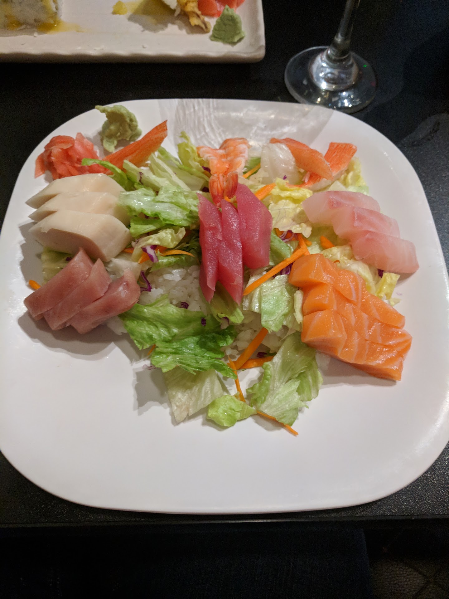 Read moreIt's OK, could be a lot better. (I lived in Japan for 3 years, and you can't get better than that)....but I'm going to take away a couple stars because their presentation takes a lot away from what could be really good food, and they lack attention to detail in their customer service. The picture of the cucumber salad in the appetizer is VERY different from what you are served. The Chirashi should be a beautiful display of fish on a bed of rice....but instead they put their fish on top of some chopped up salad that was carelessly thrown on the plate over rice. My husband ordered a couple beers. The first time the waitress asked if he wanted the bottle opened (not a twist off). He said yes so she did. The next beer she brought she did not offer to open it and just left. Fortunately my husband had a tool to open it with him. Another time.we ordered a bottle of plumb wine...and that was all we got. I had to flag down a waitress to ask for glasses to pour our wine into. I mean I drink wine from the bottle at home, but shouldn't the restaurant at least offer glasses? Paying attention to the small...