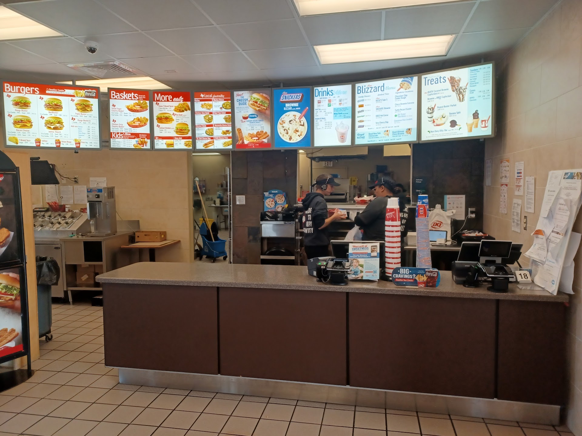 This place sucks, it was late at night and my family and i decided to get some dairy queen. We got there pretty late at night so it wasnât busy, no one was at the cashier so we had to call someone over to the counter, the guy walks over and we take our time to find out what we want, the guy puts everything in the system without asking much questions like âfor here or to goâ. He gives us our cups (4 mediums) so we walk over to the soda machine, we tried getting ice but nothing came out, so we just got the soda and waited for our food. We sat down on the couches and drank our soda and noticed it was warm and flat, we think nothing of it cause we have ice at home. The guy makes our blizzards and shakes, then gives it to us, then a different guy starts making our food, as they were making our food i noticed one was making hand signals to the other, the guy didnât understand what he was saying so he walked over to him and had a talk behind a wall i couldnât see, pretty weird donât really know what they were talking about but i saw one point at my parents and i. Theres not much i could do so i kept it to myself until we got in the car, we order 4 meals with 4 sodas and 4 ice creams. We asked for a cup holder and they said they didnât have any, idk about you guys but who has 8 cup holders in your car. So once they were done making our food we left fast noticing how bad the service was in, we get in our car inspect the food to make sure we have everything and drive off. We get home excited to have a dairy queen meal and the food didnât taste bad at all for me and my dad but for my mom she lost her appetite half way done with the burger, later that night she start getting cramps, diarrhea, and more. I look it up and there you go my 51 year old mom has food poisoning from a local dairy queen. Overall worst experience i had at a fast food chain. (count ur days for the guy who cooked that grilled chicken...
