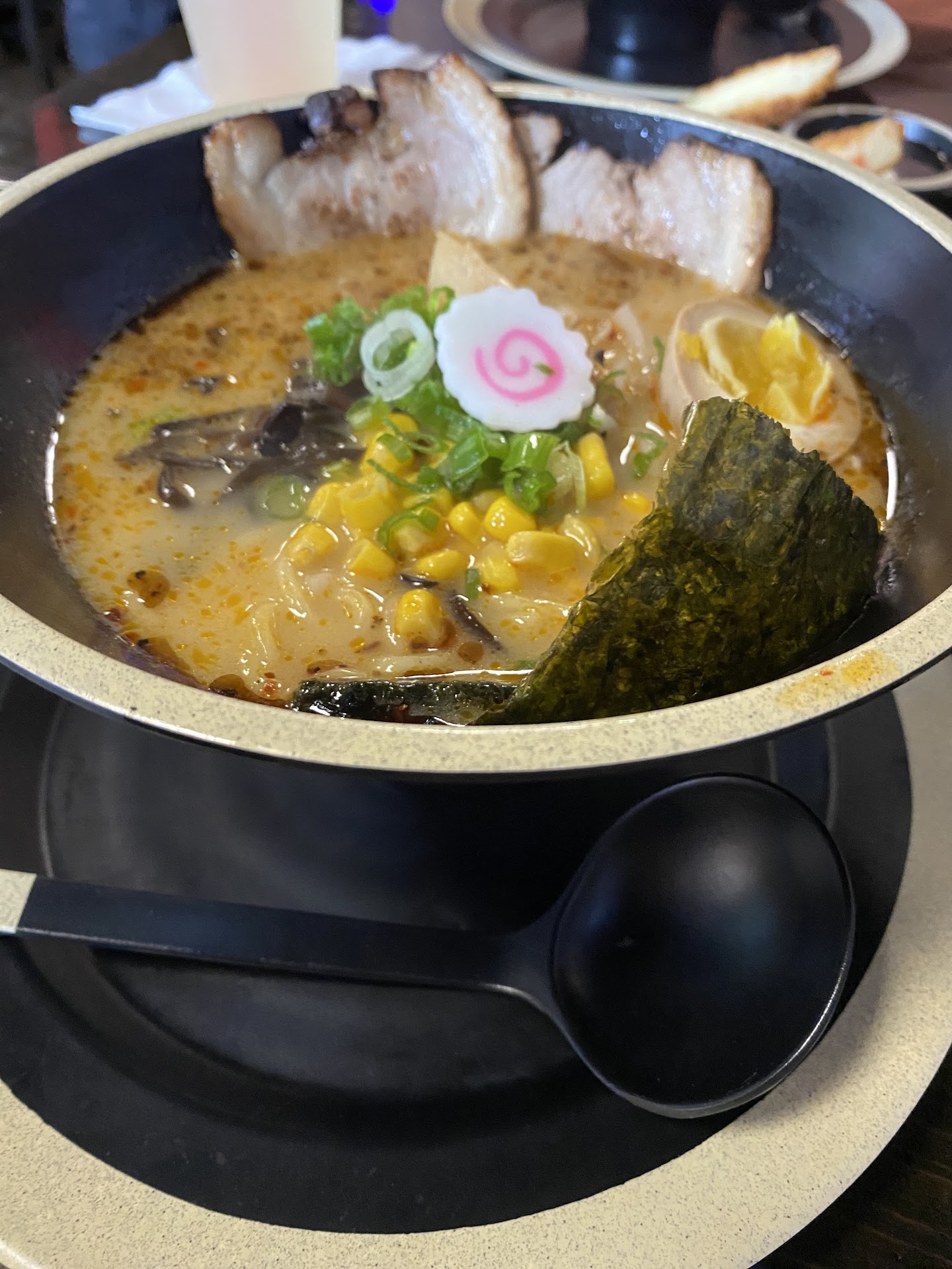 Read moreThe atmosphere was crisp and clear with warm notes of dark wood and vibrant decor. Korean dance music filled the room, and the air was clean. Our waitress came forward to serve with a smile and gracious attitude. Ordered: seaweed salad, potato korokke, karaage bowl, shrimp tempura roll (with complimentary miso soup), Tonkotsu ramen x2 spicy garlic and customized ingredients, sweet black tea, and yuzu lemonade. Seaweed salad was served on a bed of the crispest and freshest salad mix I’ve ever had, which was drizzled with a ginger dressing. Loved it. Might recommend specifying if you desire only seaweed salad by itself, as the ginger dressing will change the taste of nutty sesame you might be used to. Potato korokke was two cakes cut in half, perfectly crunchy outside, soft as a cloud within, tasty sauce, loved it. Karaage bowl perfectly crisp chicken meat, mostly thighs I believe, hot, fresh, atop fresh cabbage mix and seasoned rice, drizzled all over with yummy sauce, loved it. Shrimp tempura was as expected, straightforward tasty roll with perfectly ripe avocado, loved it. Miso soup was delicate and tasty, on par with fine establishments’ versions, loved it. Yuzu lemonade loved it! Just perfect guys, please be aware there are pieces of softened lemon rind that are palate cleansing and delicious to eat. Sweet tea was black tea, sweetened, with earthy tones and depth of flavor. Tonkatsu ramen, loved it, there isn’t much to say about it but “mmmmmmmm”. Rich, creamy broth, Al dente perfect noodles, best Ajitsuke Tamago (marinated egg) I’ve had at ANY ramen shop, fresh add ins. Added spice, which was somewhat heavy on chili seeds unfortunately. Pork was good, though very faint taste of refrigeration, and just a bit thin. Worth the trip, hands down the best ramen within forty miles. In general, now one of my top three restaurants within forty miles as well. Satisfied, warm, happy....