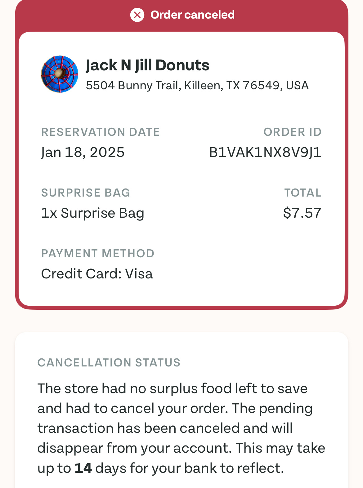 Read moreI tried the Good to Go app and reserved a bag for 7.57. I drove from Temple to Killeen to get there also there is road work going on near them as well, when I got there the man at the counter cancelled my reserved bag in front of me when I showed him the app and said I was there to pick up. I was shocked asked why he said he didnât know what to tell me and walked away. I tried to talk to to the woman at the counter who also stated she didnât know what to tell me she cannot help me and proceeded to say they cannot cancel the order only I can. When the app clearly said cancelled by store. I was so frustrated not to mention the kids I had that were so excited to get a mystery box. Had to go elsewhere. Will never...