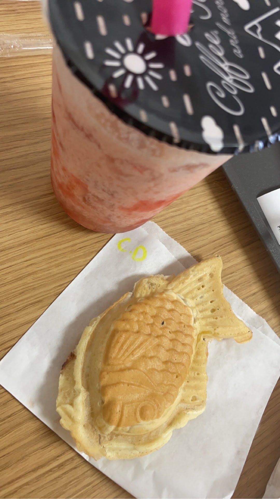 The new Taiyaki desserts (pancakes shaped like fish and filled with different flavors you can choose from) are hit or miss. They come out hot and crunchy yay! The Nutella flavor was THE BEST, the taro is a sweet potato flavor thatās bland but purple and pretty, and last but not least the custard one⦠wasnāt good. Itās a plain custard filling that isnāt even flavored with vanilla but reminds me of Bavarian cream? Not...
