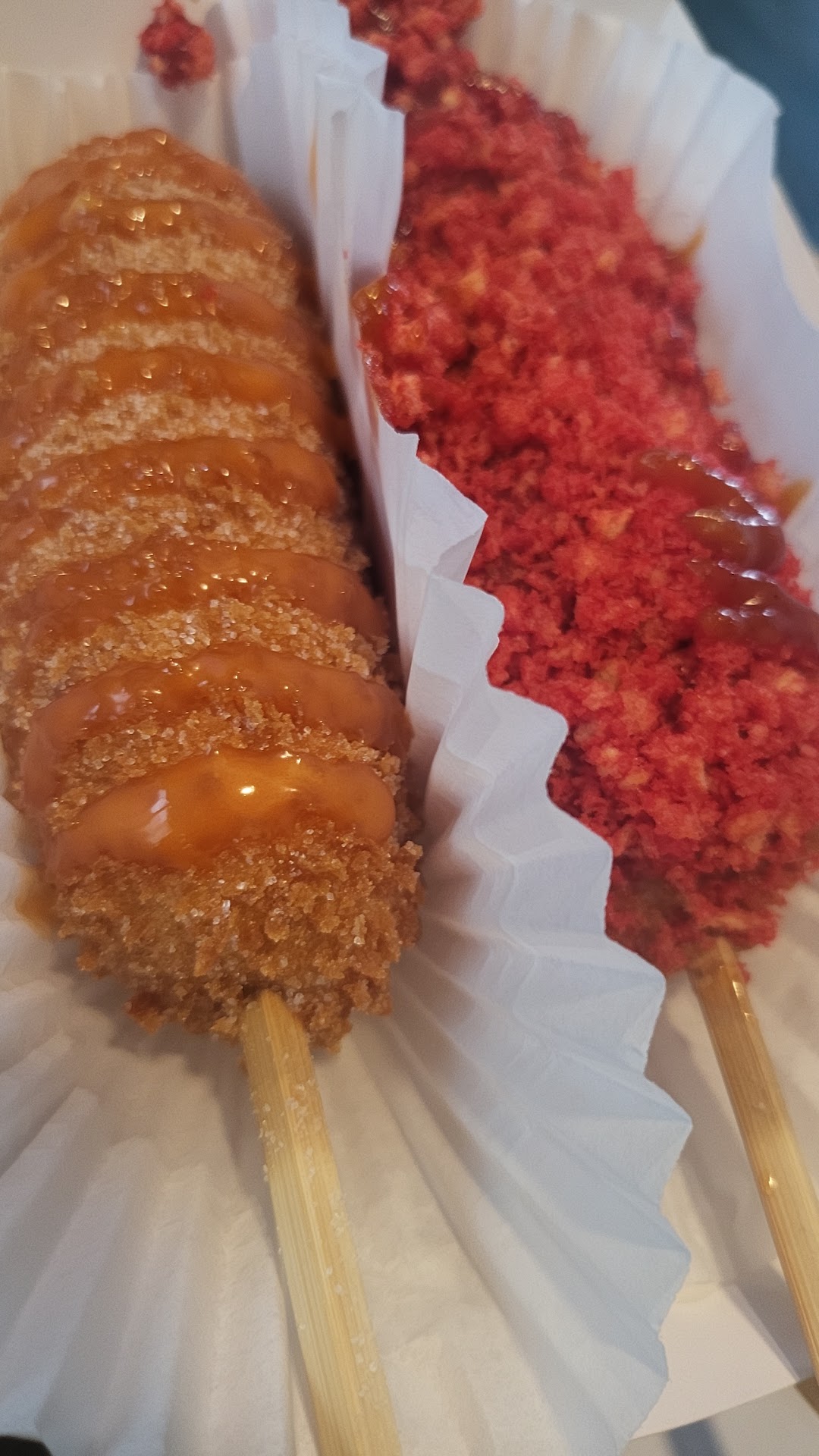 You can also get cheese inside of your corn dog if you’re into that. A good combo is the potato corn dog , cheese inside, and covered in ketchup or spicy mayo.