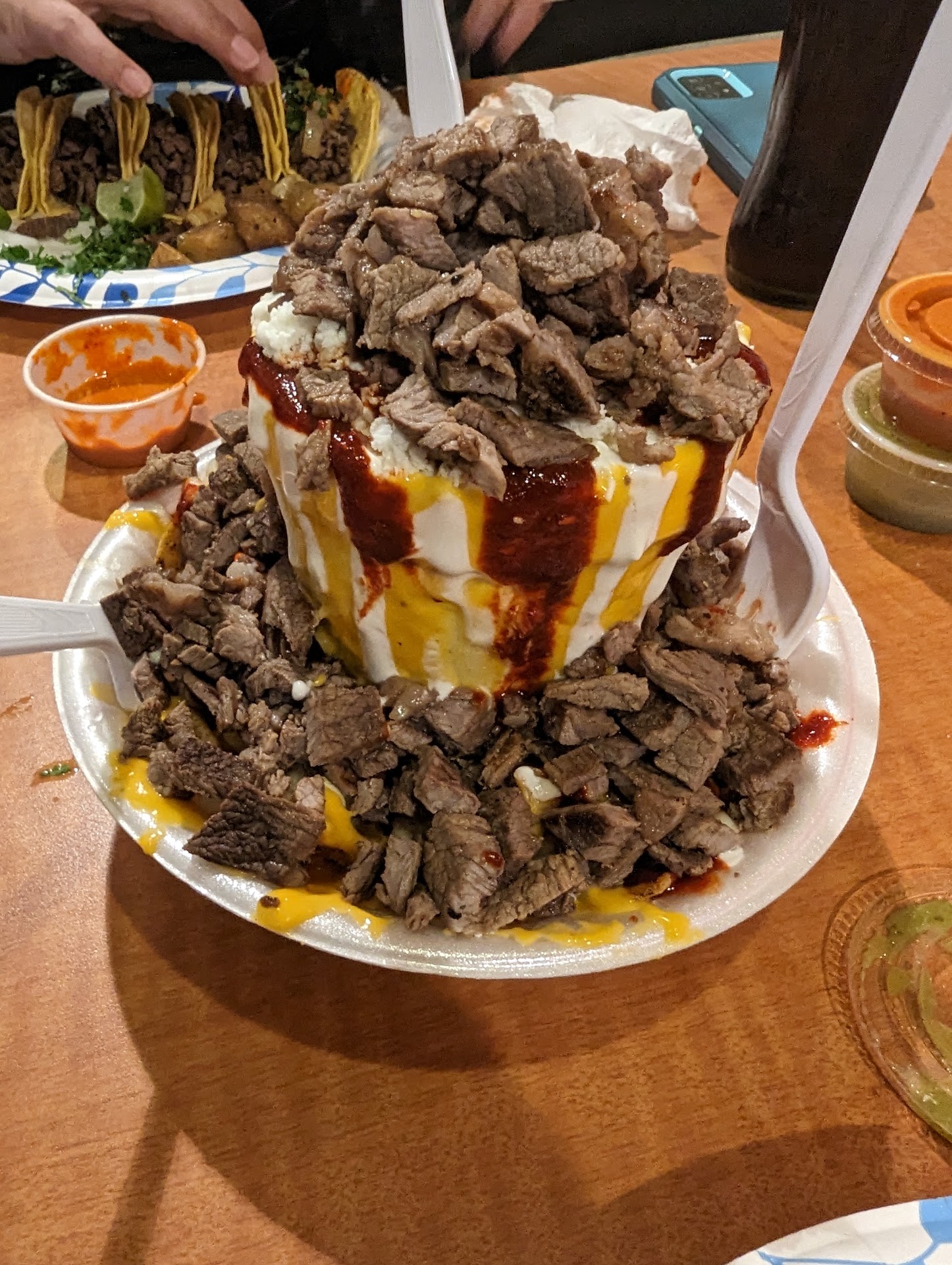 The Loaded steak Elote cup we shared between 3 people and still took home left overs. The tacos were loaded and worth every bit of what you pay for. I can fully...