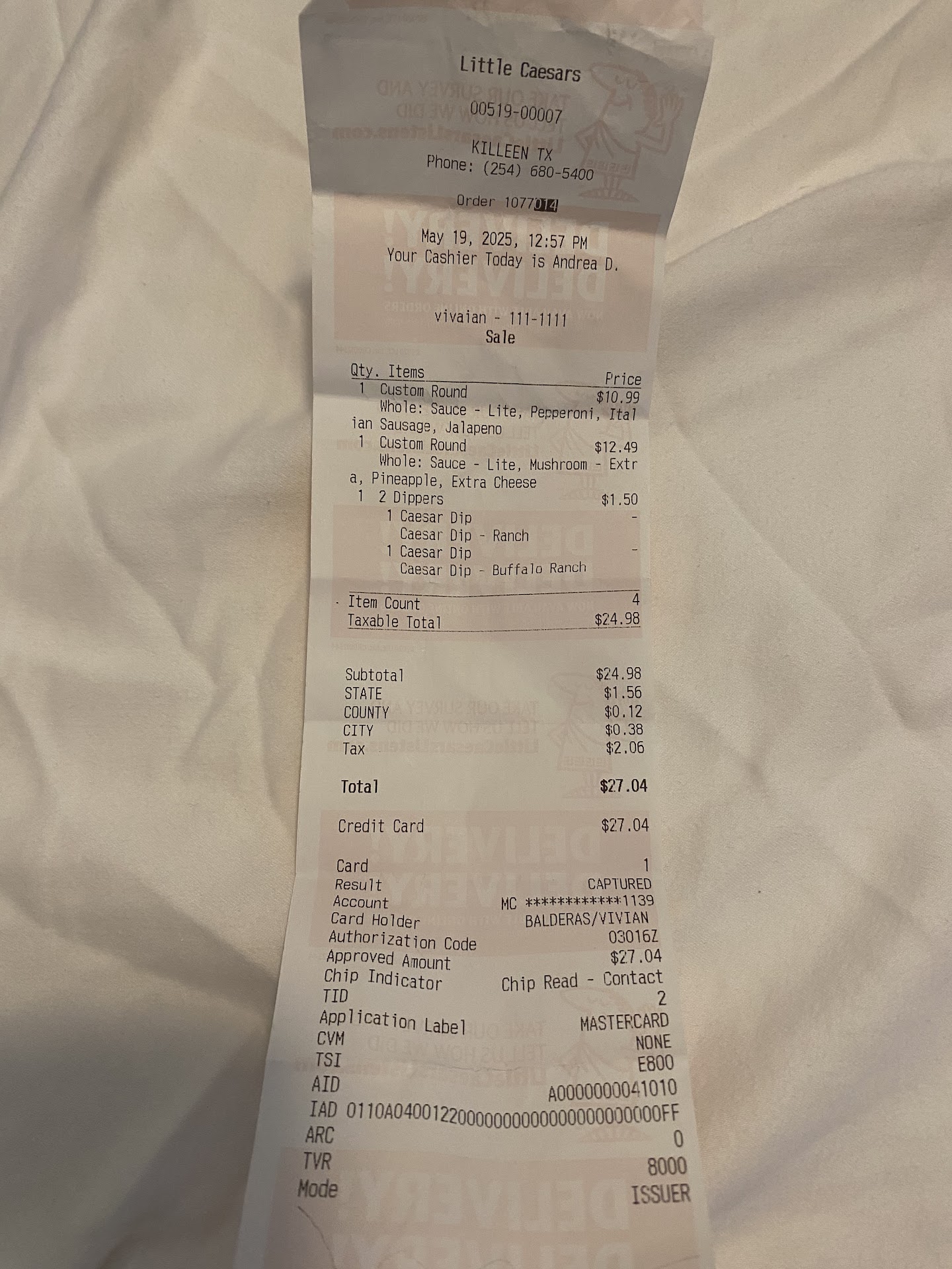 Read morePizza was delicious but I paid for extra mushroom. I’m not a Karen but you be the judge, does this look like extra mushroom? And once you leave and eat especially I didn’t want to call and complain but I felt like, well I was already tasting the delicious EXTRA mushroom, Extra cheese (which it had), but was sadly disappointed with my pizza. So I’m eating it because it’s good but I’m like asking my husband “is this extra mushroom?” And he’s such a guy and is like “I don’t know”. He got his own pizza and is totally happy with his results, i was jealous, cause he got what he ordered all the cheesy pepperoni Italian sausage goodness and I was sad because I LOVE MUSHROOMS on my pizza and I was eating it and thought I’m just hungry but NO they didn’t put extra mushroom. So do I ever return? I saw my receipt and it was correct and assumed my pizza was correct so yeah. Here’s my receipt and some pictures. I didn’t want to go into the store complaining. (I’ll just complain her right lol) Don’t get me wrong it is good pizza I’ll be back. IT WAS YUMMY but where are my extra mushrooms. LITTLE CEASARS CREW SLOW DOWN I KNOW YOUR TRYING TO BE FAST AND THANK YOU BUT SLOW IT DOWN a teeny bit. Next time I have faith that y’all will get it right. Good service here, great tasting pizza here but my order was wrong in my opinion. Look at this pizza y’all don’t it look delicious?! Yeah it’s yummy. I like this location. Hopefully next time they will put my extra mushroom. I’m...