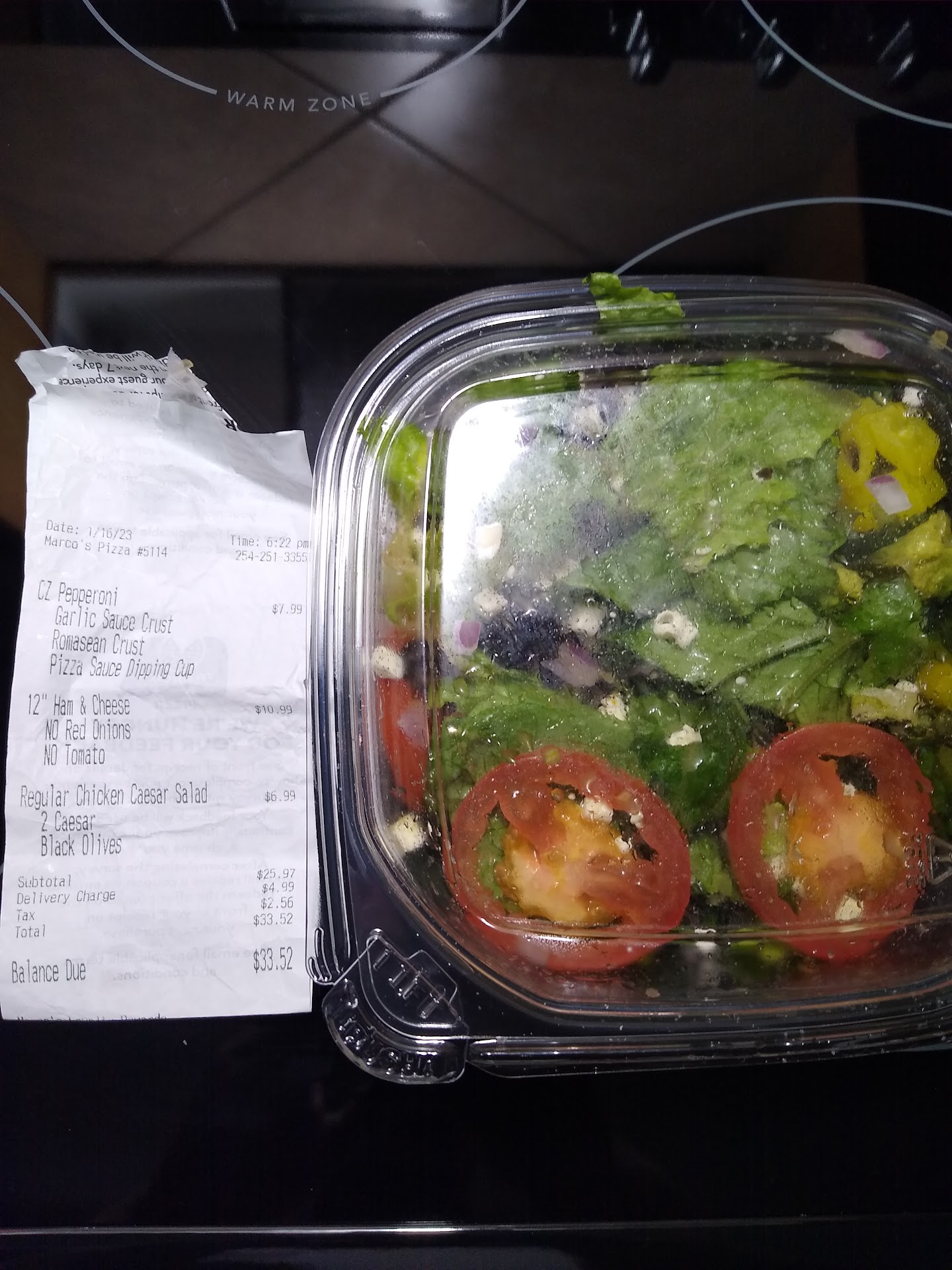 Read moreI used to love Marcos but my last 3 experiences have been terrible. The last 2 times we ordered delivery our salads were forgotten. I was told they would refund me and that didn't happen either time. I went today for pick up. Recieved an email at 4:15 that my order was ready for pick up. I get to the location at about 4:25 because I was close by. I didn't receive my food until 4:45. I had a total of 3 people ask if I was helped. The first two asked for the order name and then never came back and proceeded to ignore me at the window. Finally a 3rd worker came up and asked it I was helped and had my pizza and drinks to me within minutes while the other two workers leaned against the counter rolling their eyes at me. I never made a fuss until the 3rd person came up and I let them know I had been waiting 20min and nobody was informing me what was going on with my food. We order from her 3-4 times a month and today was the last time. Terrible customer service, rude employees and missing items on several orders.DO...