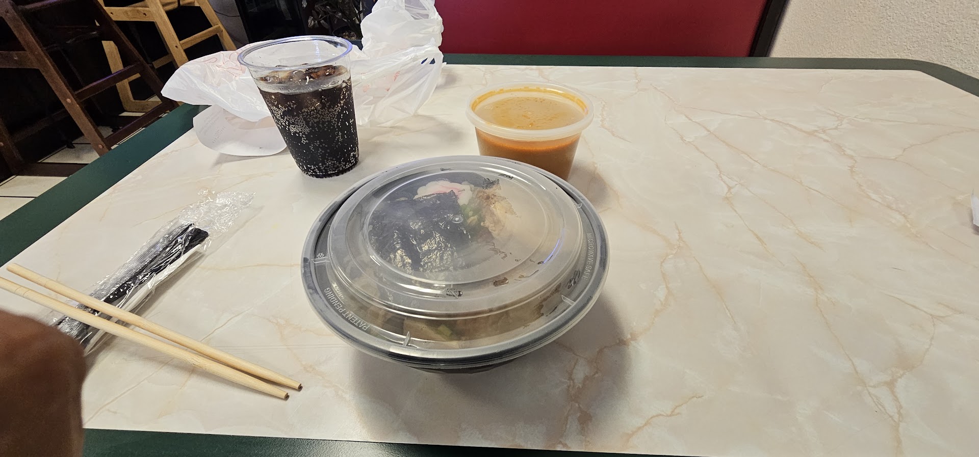 The woman at the desk taking orders brought her child with her today, allowing her child to run around and talk to customers. I understand a lot of people are okay with that, but when the little girl eventually ran over to my booth, I was uncomfortable. I like to eat alone in peace.
