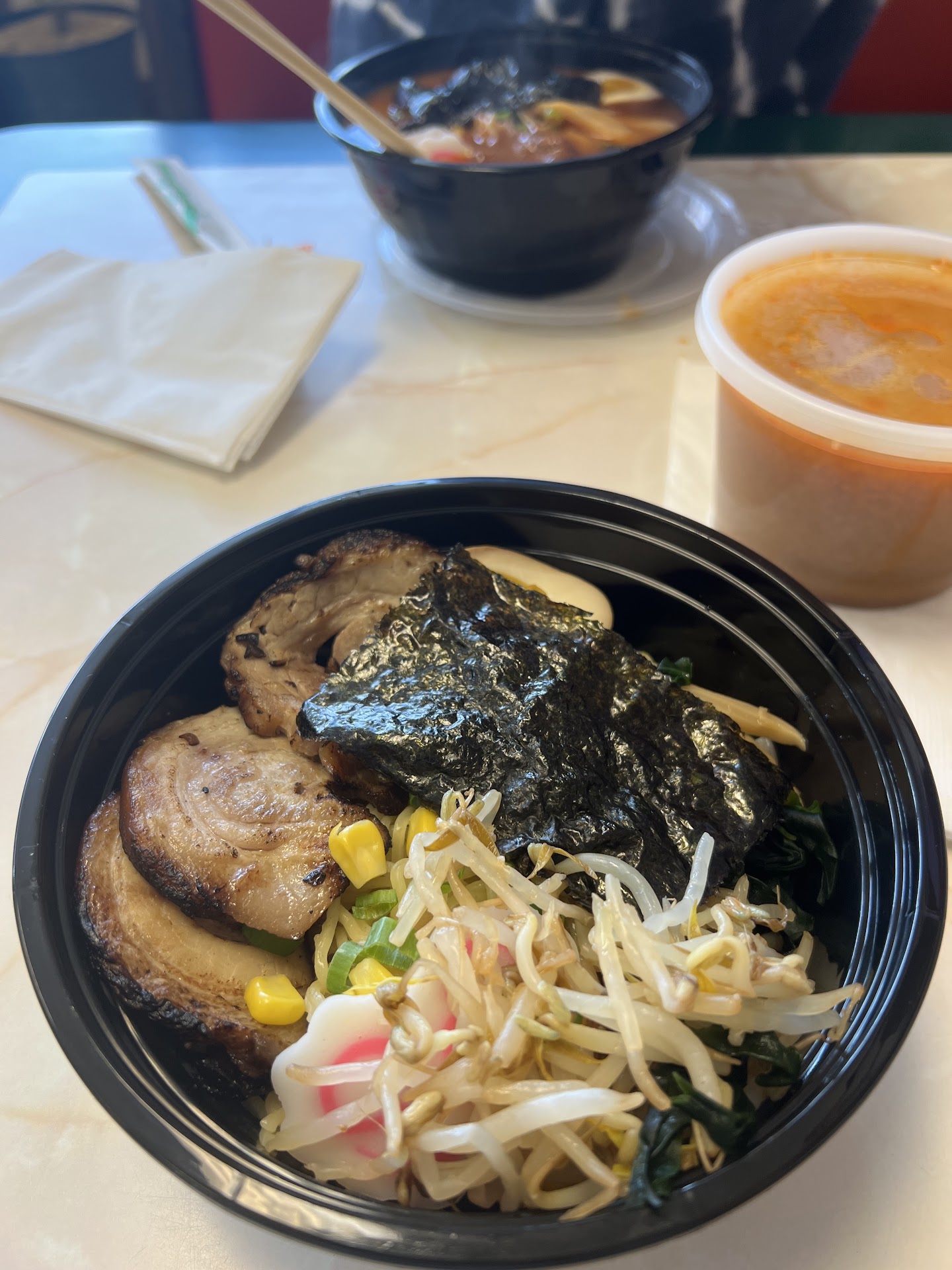 I ordered Spicy Miso Ramen $10.99 and Takoyaki (6pcs) $7.00 and it was the first time that I didn’t finish my food I had to take it home. BTW they come in to-go containers when you order so thats really convenient. Spicy Miso Ramen gave me the heat and kick that I was looking for. The spicy paste was so potent it made my already milk broth more creamier. It was the best!!! The Takoyaki is priced well and it’s not airy and hollow. It’s densed and has a good chunk of octopus meat. It was delicious and filling!!!