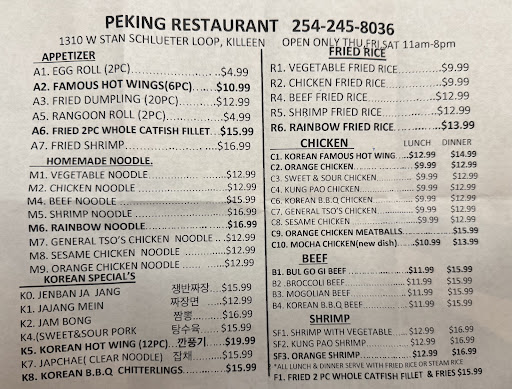Read more9/11/20 EDIT PEKING RESTAURANT IS OPEN AGAIN!!! My husband and I missed this restaurant so much while it was closed during quarantine! We are overjoyed that they are open again; the owners are so sweet, personable, AND they have the BEST Chinese food in town! If you're craving QUALITY Chinese food, this is the place to go. :)