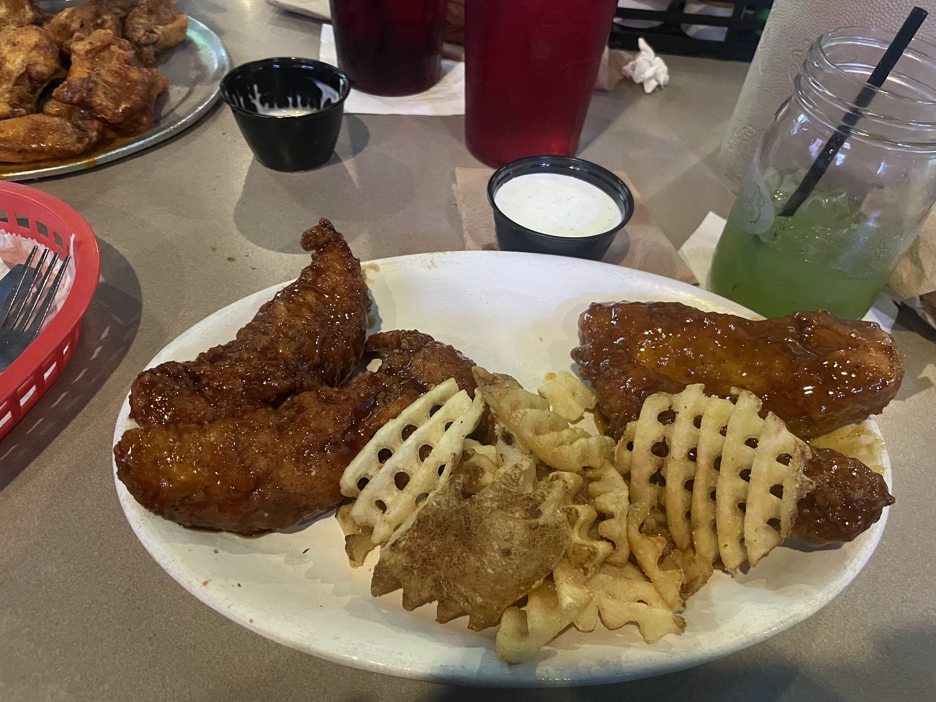 Reflecting on our experience at Pluckers, it appears that it may not be the first choice for us in the future. While the giant mozzarella sticks and the allure of watching the game were enticing, the less-than-stellar margaritas and the somewhat underwhelming wings were not in line with our expectations. Based on this particular visit, we might lean more toward other establishments, like Wingstop, which have consistently met our preferences and expectations in the past.