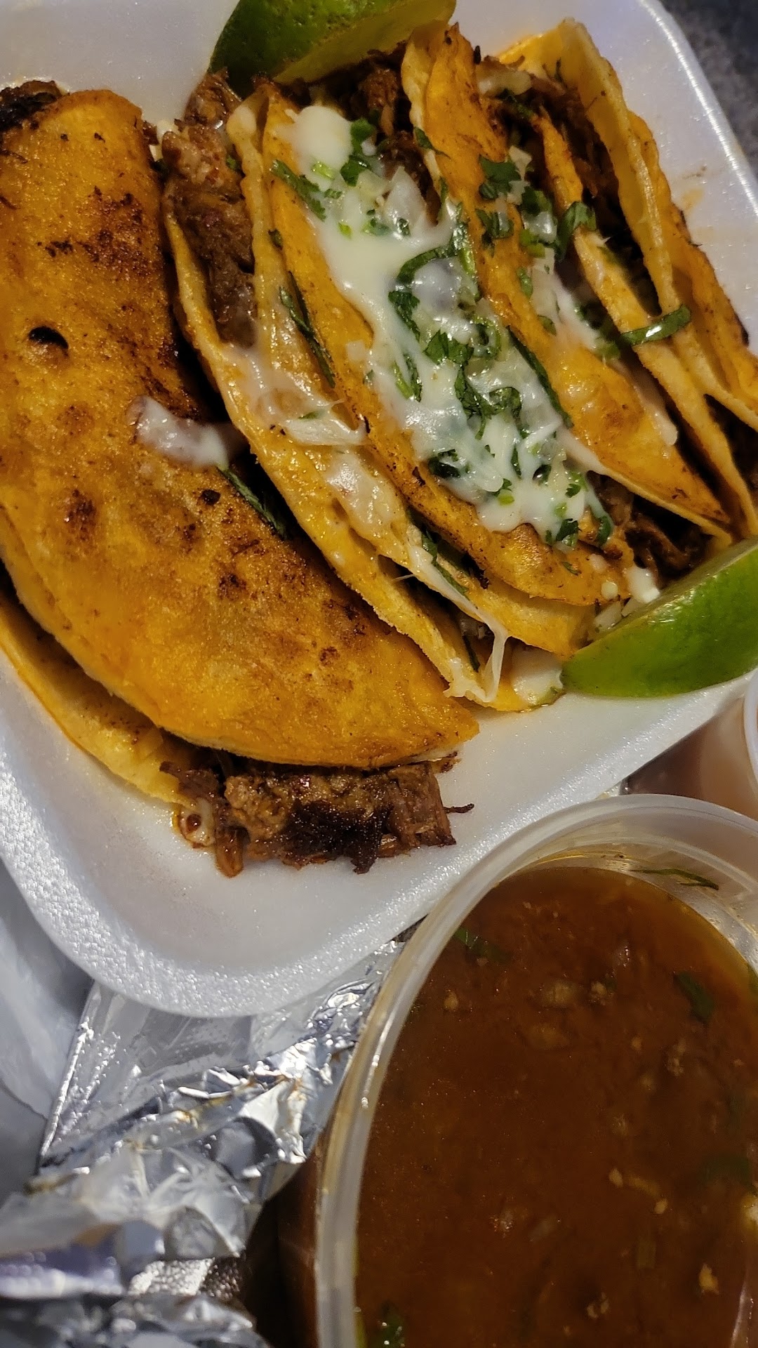 I had a taste for birria tacos and wanted to check out a new spot instead of going to my usual food truck for them. I've passed Tatazo several times, but I finally decided to give them a try. The birria tacos had really good flavor, but they were soggy instead of crispy by the time I got home. It was disappointing, but seeing as they at least had flavor, I powered through and finished them. The consumé helped, and unlike some places, it wasn't just a cup of grease and oil. The horchata was better than a lot I've had in the area, so there are no complaints on that end. I'd try the birria tacos again, but I'd eat them in the car there. I do plan to try other menu items as well. If you like birria and know how hard it can be to find good flavorful birria tacos, I think you'd...
