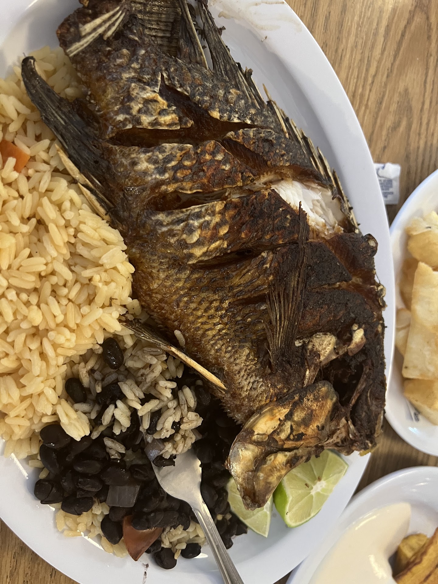 The rice was hard. Everything around you is broken or destory The waitress is completely clueless She can’t talk in English OR Spanish The fish took almost a hour and it was black I ask for coffee and milk and they gave me American coffee. Three times we ask for our first drinks and we never got it. We ask for the check and had to pretend to walk out to give it to us The food had zero favor (the place was basically empty and she was texting so it wasn't a “busy” issue)