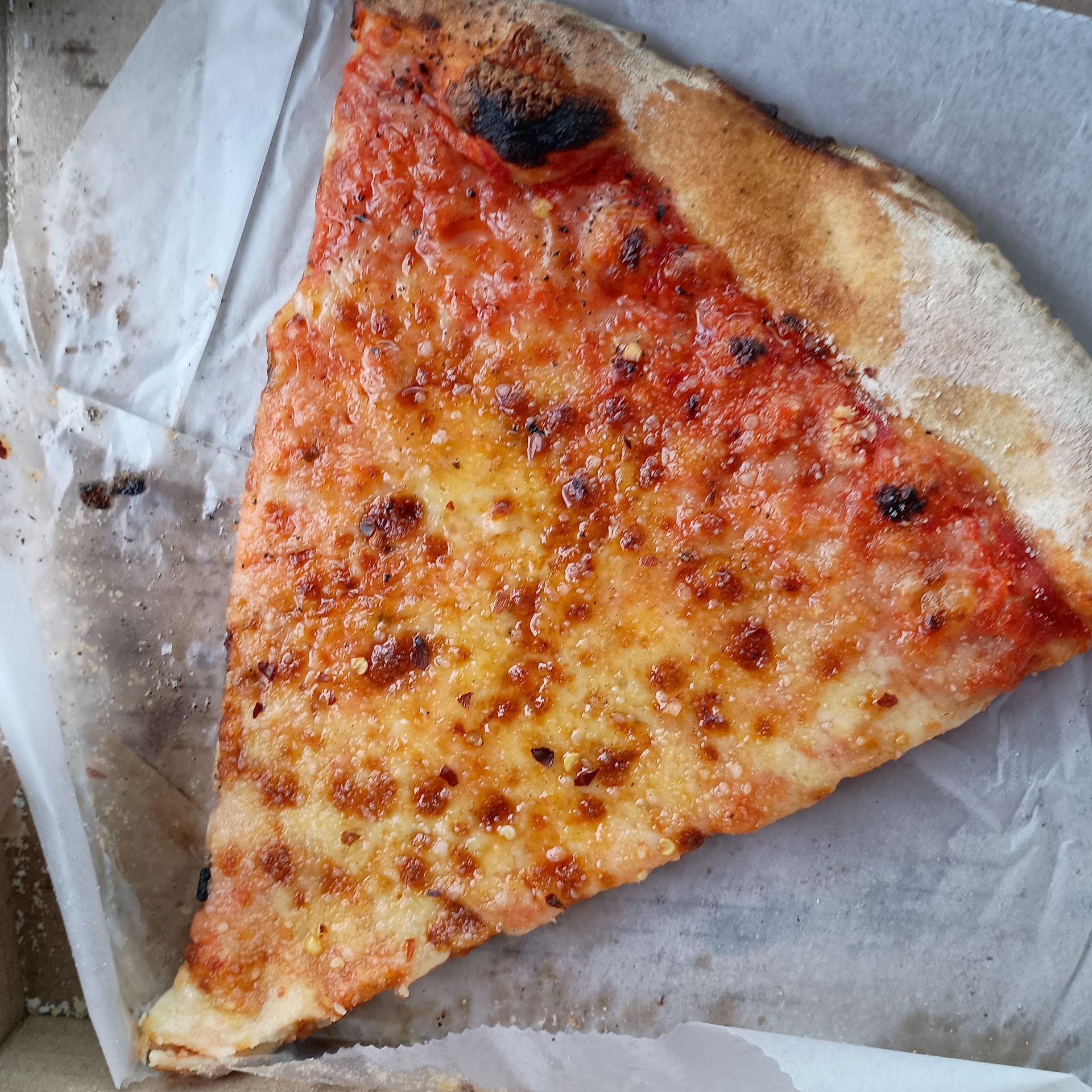 Read moreQuaint little pizza shop that smells delicious as soon as you walk in. It's a seat yourself kind of place with a nicely decorated bar side and a quieter dining room option. They sell slices to go, which is a great lunch/dinner option. The pizza was a flatter woodfired crust that was crunchy yet soft. My friend also had a chicken parmesan wrap which came out nice and hot with onions and peppers. The dining staff was friendly and attentive. The waitress was knowledgeable and recommended a beer when my favorite was out and my friend ordered a mixed drink-vodka cranberry with Sprite/Sierra Mist. Unfortunately, the drink was the only negative experience. I wouldn't suggest ordering soda/mixed drinks with soda from this place because it was extremely flat. We brought it to the staff's attention that the Co2 in the machine might be out and would like the drink to be remade, since it tasted like cranberry flavored water. The waitress took our drink to the back and it was quickly brought back to us with a side cup of the Sierra mist to prove it was bubbly without the drink being remade. This was extremely disappointing as the drink was AWFUL. I would come back as we had an overall pleasant experience, but I would only come back for...
