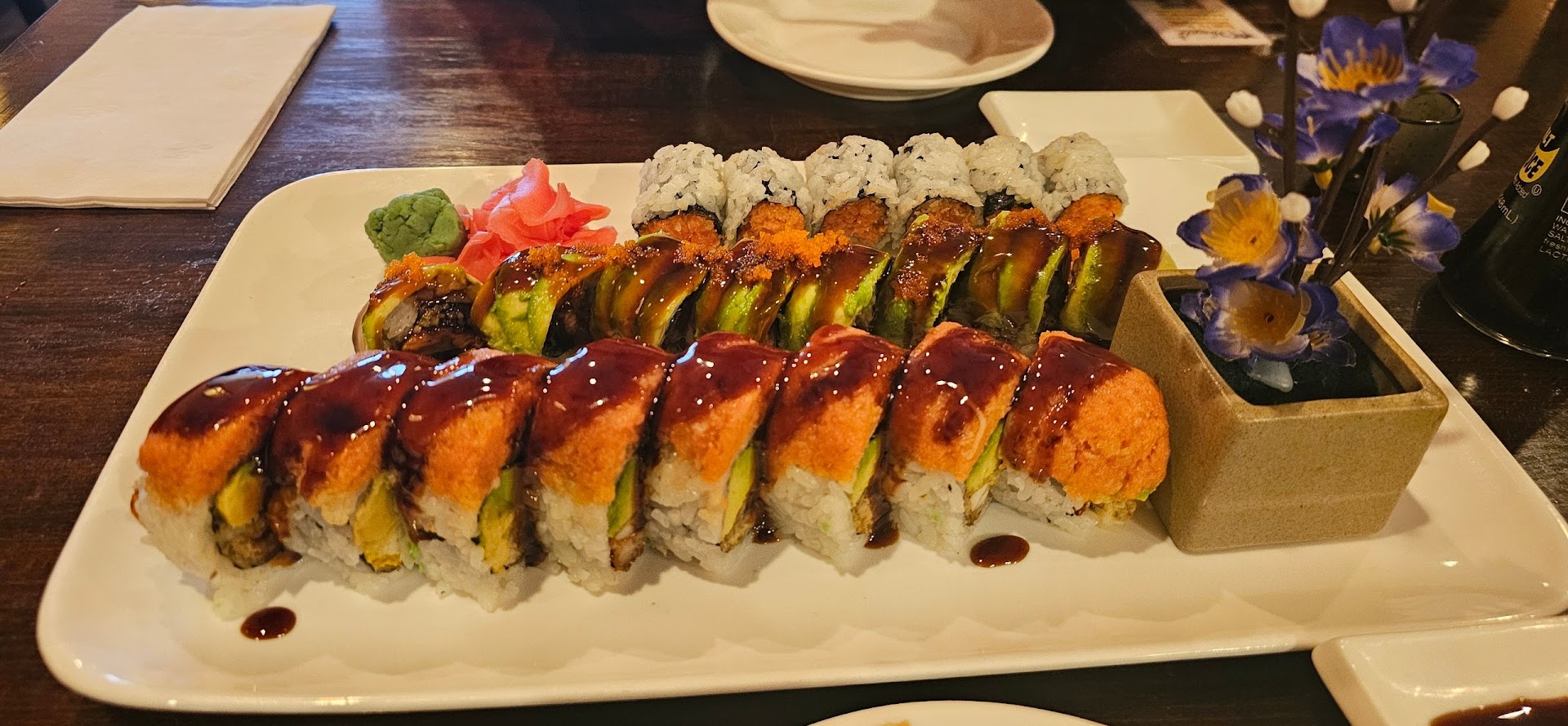 Read moreA friend told us about this place and we popped in for my birthday dinner. The dining room is small but seating comfortable. We arrived a little before the regular dinner hour. The service was really good. Two servers were highly attentive, constantly checking on us to see if everything was okay and if we needed anything. We started with salads. My husband had a green salad and loved the dressing. They brought him a squeeze bottle of it so he could decided how much he wanted on the salad. Smart! I had the avocado salad with a lovely pile of sliced avocado. The lettuce and dressing underneath were somewhat irrelevant but the avocado was perfectly fresh. Then we had the shrimp tempura appetizer. Perfect for two people. One onion, broccoli, sweet potato and shrimp per person. The tempura was light and not greasy, perfectly fried. I would have liked a thicker dipping sauce but it did not disappoint. Then came the sushi. We were both very pleased with our choices. I got a vegetarian roll with seaweed salad, cucumber, and avocado, and the Dragon roll. Some of the best sushi I've ever had. My husband loved his choices too. I am so glad we had an excellent experience and I look forward to going back again. Happy to support a small business in our area....