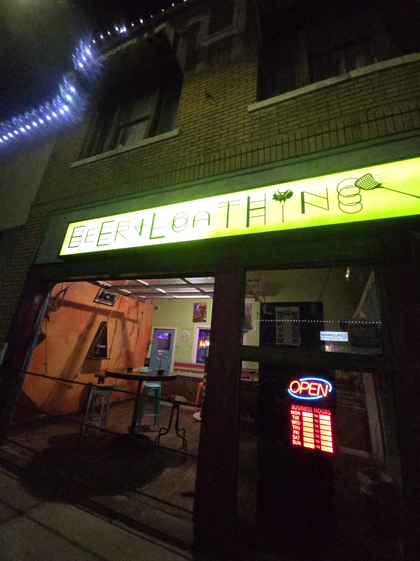 A cute Fear and Loathing, Hunter S. Thompson themed dive bar. An eclectic and vivid, Alice in Wonderland looking "trippy" atmosphere with random knick knacks. A small bar with an abundance of drinks and your average burgers and bar food. There were no drafts, only cans and bottles. There is a "bucket" special, buy two Coors light and $2 off the second one. Our waitress was awesome and super sweet, waiting on us, the entire bar, making drinks, and she made all the food. We stopped off the road for a unique change of scenery. There is no website, so it was tricky thumbing through photos trying to figure out what they served. I am always looking for fresh, healthy vegetarian options, and unfortunately, this was not it. I ordered the grilled cheese with cheddar and provolone and grilled veggies. The veggies were Brussel sprouts, orange peppers, onions, broccoli, and zucchini, which is great. However, the grilled cheese was pretty skimpy, could've used more cheese (only two slices, not filling) for $10 and the veggies were too greasy/oily for me (not true grilled veggies) I couldn't stomach them. My partner, on the other hand, enjoyed the chicken and bacon sandwich with tater tots. I would recommend this place for the atmosphere, beverages, bar food, and great service. My review is purely on my expectations of...