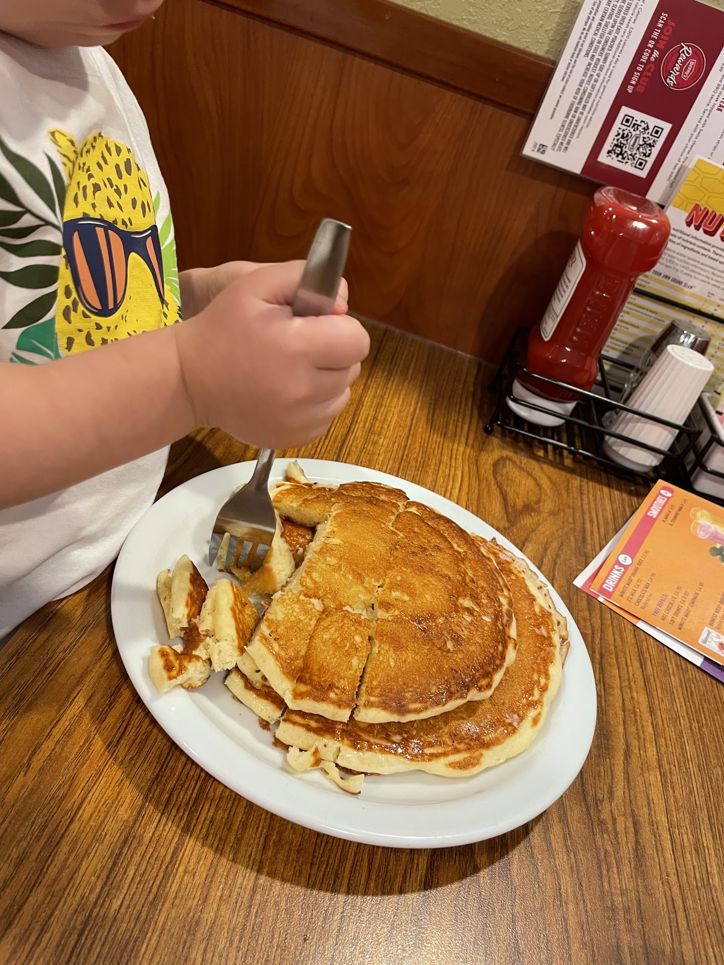 Also had to ask for syrup for pancakes (gave pancakes, no syrup) she said she'd go get it- took twenty minutes (we had already just took it from another empty table after 10 minutes). Really?!