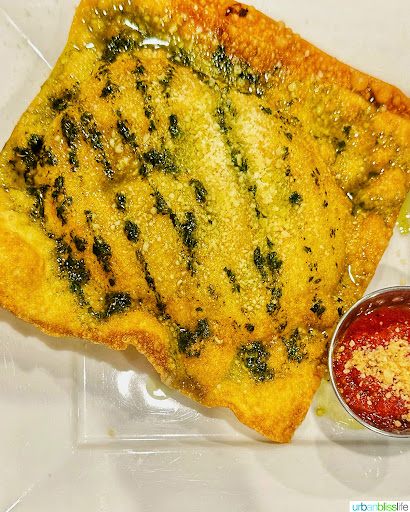 The giant deep-fried ravioli appetizer is ginormous, crispy, and tasty. Definitely a good app to split among friends.