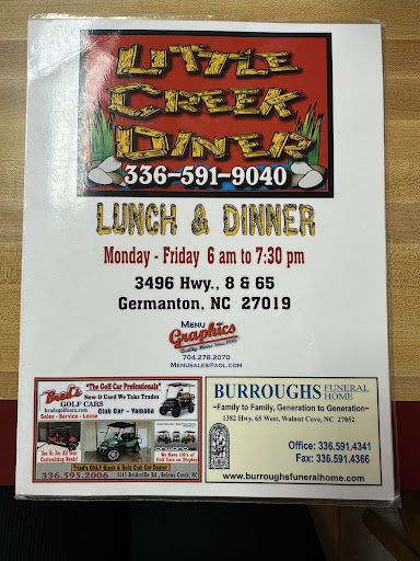 Ā Ā Ā Read moreI have driven past this cafe many times on my travels to Durham. This morning I decided to stop to eat a late breakfast. I hoped to experience some friendly local color. It was anything but friendly. I was greeted with stares by wait staff and other customers in the restaurant. Guess they are not used to seeing strangers in their cafe. Eventually I received a menu and then had to wait longer than I had expected to order. The waitress seemed disengaged and disinterested. The food was mediocre. The pancakes tasted like bisquick batter, the syrup was Aunt Jemima and the sausage links were cooked so long they were tasteless and tough. My first cup of coffee was definitely the bottom of the pot. It tasted burnt. The second cup was fresher. The price for the food was reasonable. I was really disappointed in Little Creek Diner. I was happy to leave and won't return. Yes..I was the person who left a large tip this morning. There is no reason to be rude...so please don't be that way to others. A greeting and a smile would...