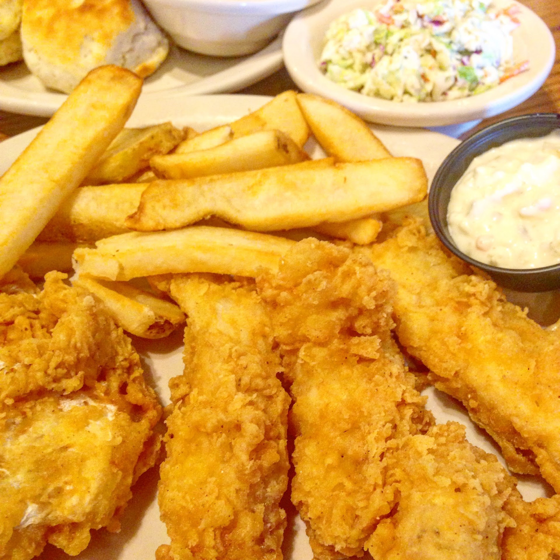 On Fridays starting at 11 a.m., Cracker Barrel serves their Fish Fry ($9.99). You can choose from four cod fillets hand-dipped in their own special batter and fried to a golden brown or their U.S. farm-raised catfish, cut thin and tossed in a blend of cornmeal and seasonings. Both are served with steak fries and coleslaw. The cod was lightly battered for a crispy exterior and delicate, succulent interior. The batter could use a little more seasoning but salt and pepper is on the table to season up to your liking. The fries were golden brown but due to the thick cut on the steak fries, they were a little underdone inside. A minute or two more in the fryer would do the trick. The slaw was light, crisp, and refreshing. It had just the right amount of sauce for the perfect coleslaw. Rating: 4/5