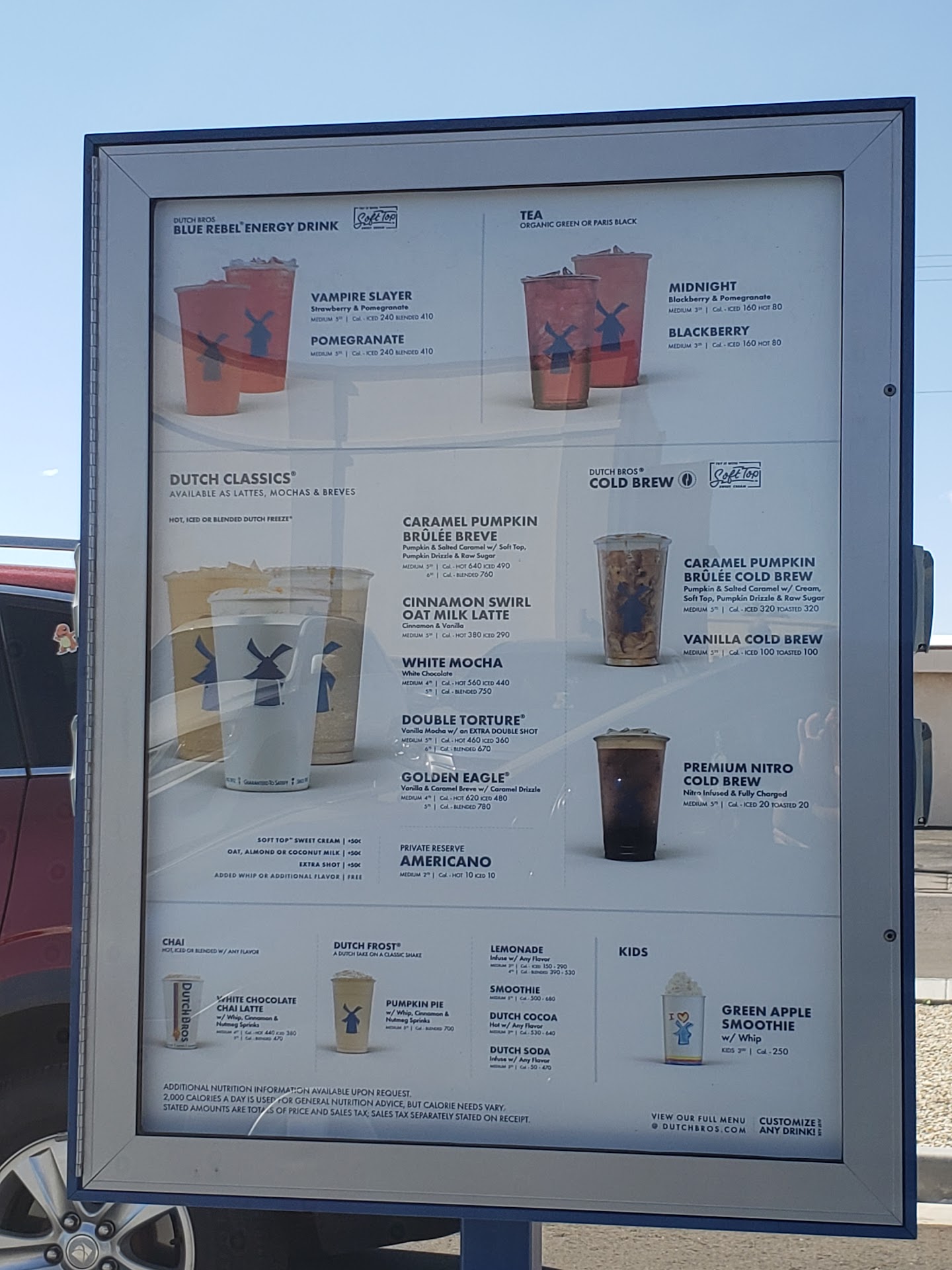 I think I just got wooed by, like, 8 people? I pulled onto the drive through, and immediately a couple of people waved at me. Every single person who walked by either waved, smiled, asked how I was doing, or all of the above. The guy who took my order (I didn't ask his name, which was rude of me 😓) was SUPER nice. He answered all of my questions, chitchatted with me, and was just super pleasant. I have a hard time in general holding conversations with strangers, but he was so nice! He even told me if I didn't like the drinks he recommended to come back around and they would make a new one. Then another person came up and gave me free stickers. Then the drive through window person was super nice too. Just overall it was really nice. In kingman, we don't get servers like that. And they were BUSY too. I really hope all of their customers reciprocate...
