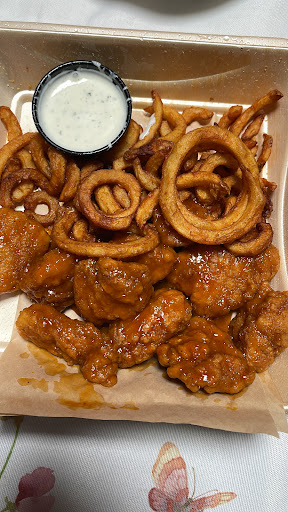 Placed an order, for the 32 bone in wings they offer curb side delivery and the order was already paid for. I waited in my car for twenty minutes. After twenty minutes I walked in saw my order getting cold on a wire rack. The gal said if there is only one of us we don't bring it to your car, so why offer curbside delivery? I picked up my food the fries were bad cold and the wings sat in sauce making them soggy not crispy. So I would not recommend...