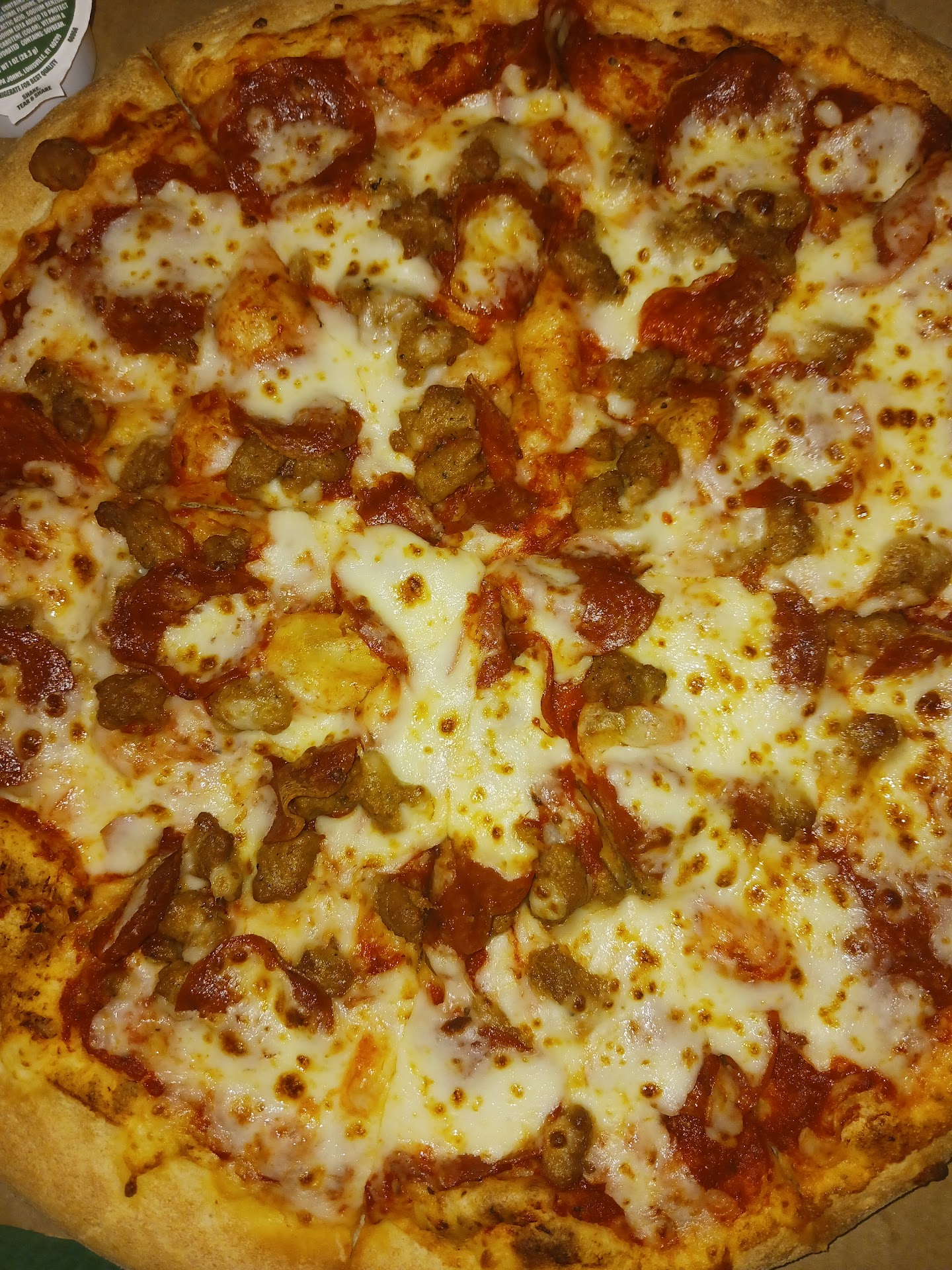 Can you tell which pizza has extra sausage? Today, I order 24 wings and 2 large 2-topping pizzas. One of my orders I ask for extra sausage. The one with "exta" sausage barely has any on it at all. The one with normal sausage has way more. I'm thinking they mixed it up. I say to the man in the store, "I orderd extra sausage, this is extra sausage, it doesnt look like it ? He yells to the back and a man responds "that's what your going to get for a 3 topping pizza". 1st, onions isn't normally considered a topping, the meat is. So you substituted onions for my meatđ©!! 2nd, instead of arguing with me, the customer, they could of just fixed it. I'm a firm believer tht the customer is NOT always right but this...