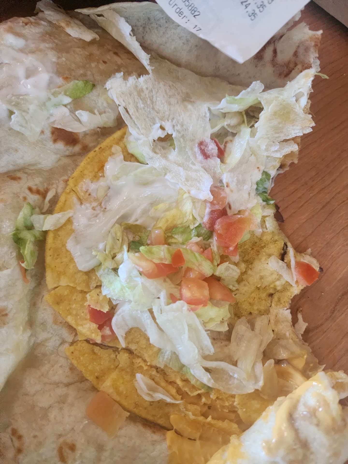 First of all pictures doesn't deserve a place on this post. Now on with my order... There was a storm coming in a really bad one and I decided to order online and pick up through the drive thru because I didn't want to get out in the rain. It told me to tell them my name when I got to the drive thru. I did just as it told me to and when I got to the drive thru I told them my name and they told me I had to come in to pick up my order I said I ordered it, and put pick up in the drive thru. And they proceeded to tell me I had to come in. I said you can't just give it to me through the window? They said no. That I had to come in. So when I got to the window I asked AGAIN if they could give it to me through the window. All the while my phone says go through the drive thru and pick up my order. They got sassy with me again and said wait a minute... So they gave it to me in no bag for us to carry it in no drink holder for our drinks. And bad attitude all the way around. I had to ask for a bag to put it in so we could run it to our door as it's pouring down. Me and my fiance got home and opened our order and they had none of it right. And it was cold. I ate only a small portion of it. My fiance ordered a crunch wrap and it was soggy. My nacho fries was stone cold. I had sour cream on my fiesta potatoes and it makes me physically sick having sour cream. No utensils to eat our potatoes that was cold and messed up. No napkins and no hot sauce. The only thing that was good was the drinks. These kids that work the drive thru have no work ethics whatsoever. Their attitudes were horrible and no respect at all. I am saddened that these kids are just in it for a paycheck. Doesn't care about customer service one but. Will NOT be...