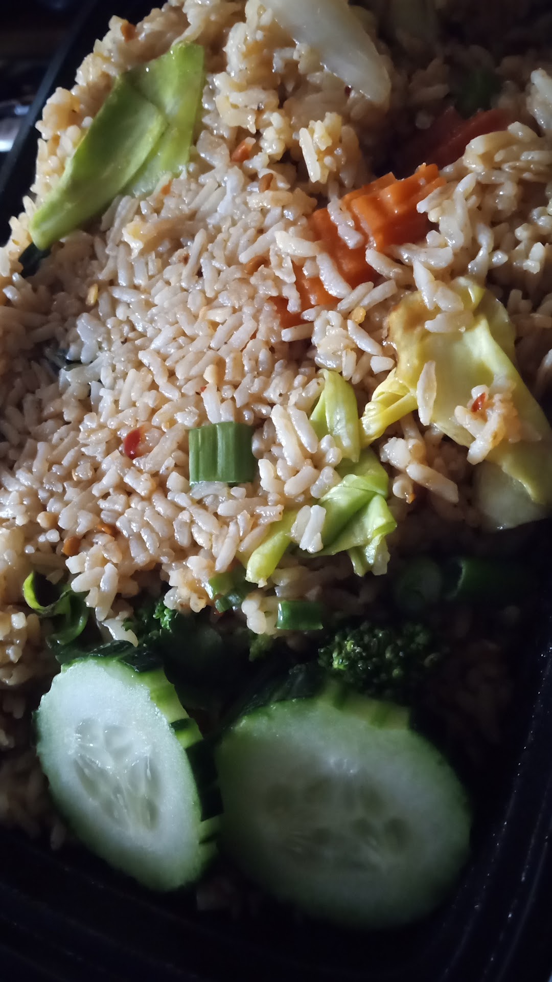 The food was from frozen sources, tasted just like the stuff I get from my freezer. They overdo their dishes with overcooked/fried garlic to try and cover that the food was originally frozen. Broccoli was barely chewable, very hard; the chicken cooked straight from frozen, giving the rough and over chewyfeel and bite.