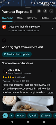 Read moreI ate here, well almost ate here today. My wife and I ordered the teriyaki vegetable plate and my wife’s with no mushrooms. We got the food home and our kids started eating their teriyaki chicken plates. They told us their broccoli tasted really awful and weird. I tried it and it taste like dish soap. I called them back they told me to bring the plates back, so I did. When I got there the manager told me that his vegetables do not taste like soap he has been cooking all day and his vegetables do not taste like soap. So, I told him to try them and eat it and then let me know. He refused. Then he told me he would never cooked vegetables for me again because his vegetables do not taste like soap. I said OK I won’t order them again. Then he gave me my money back which I thought was nice, but he did not offer me any more food or anything. Then I said OK will thanks and then as I started to leave he asked me where the shrimp sauce was. So, I asked him “were you going to give that to someone else?” “It’s already been at my house and you can’t re-serve that to someone else.” Then he told me “I give you shrimp sauce and give you back your money and it’s my shrimp sauce. I told him I would bring it back but I’m probably not going to unless he wants it slammed up against the windows of his restaurant. He has lost this customer and my family for life. Although this was the first negative experience I’ve had here, it was probably the most negative experience I’ve had an any restaurant ever, my entire life Besides this one time some kid pooped in the floor, but that wasn’t the...
