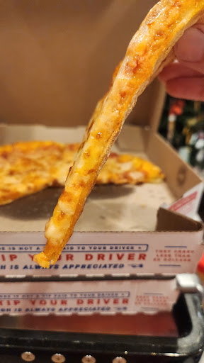 Read moreIf I hadn't managed a dominos before that was consistently managed on standards, I might have a laxer opinion.. but I have, so I don't. But I wish so bad that it was better than it is. The hand tossed dough has been consistently thin as a thin crust, no rise in it at all. They are either smashing it too much while stretching before cooking or using over proofed dough, I dont know, but both produce that result. The cheese is always consistently not to the edge and showing burnt sauce. The cheesy bread always has a stick or two on the ends that is just breadstick, no cheese at all on top or inside. The twists are always very different in sizes, like tiny to super big, so no care in making those either. The food itself is still better than pizza hut or little ceasars.. but I know just how good dominos can be and this is a disappointment to my GM heart. I also know there is no way on a friday or saturday evening that my order is immediately in the oven. We often have to wait for our order after arriving because they screen clear orders as they come in. I know that helps YOUR bottom line and franchise ratings, but it hurts your PR. I wish I would take photos more often, but I don't. I would hope sending ratings through the app would help the franchise owner notice something is wrong, but apparently, it doesn't. So here's to the public. I'll keep taking photos from here on (good and bad) and update...