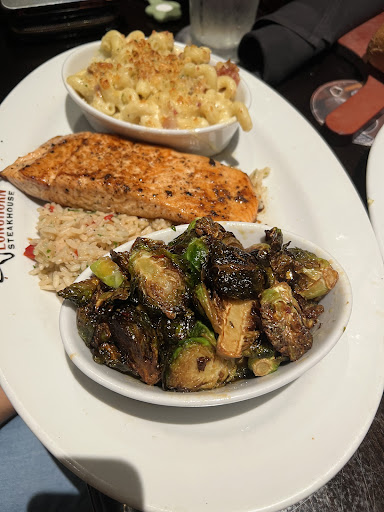 -Longhorn salmon: Yummy, flaky salmon served with rice. This paired well with the crispy Brussels sprouts, which were another table favorite. The sprouts were tender with the perfect sweet and savory glaze.