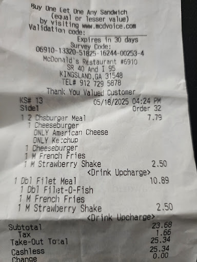 Read moreThe line for the drive through is slow at times. But I will say If you ever get McDonald's you have yo use their app to order they have coupons that regularly give you 20 or 30 percent off your entire order if you spend either 10 or 15 dollars. With a family of 4 that is going to happen almost ever time. So it saves you money. As well as earns points that you can use for free things like a happy meal or a quarter pounder. I susally use the points when it's just 1 person eating so then it is a free trip you can only order one thing at a time on your app. But a way to get around this is to have 2 accounts on different phones. But then there will be 2 different amounts of points to use. Also the speed of which you can just pick up your order from the app is amazing. Order it say when you are there drive in the drive through and your food is usually ready by thr time you get to the second window. I will also say if you do in for an inside pick up it is still faster then just ordering in house most of the time. And once you get the layout of the app it is easy to navigate. As well as it saves your orders so you can just save an order if you someone that keeps...